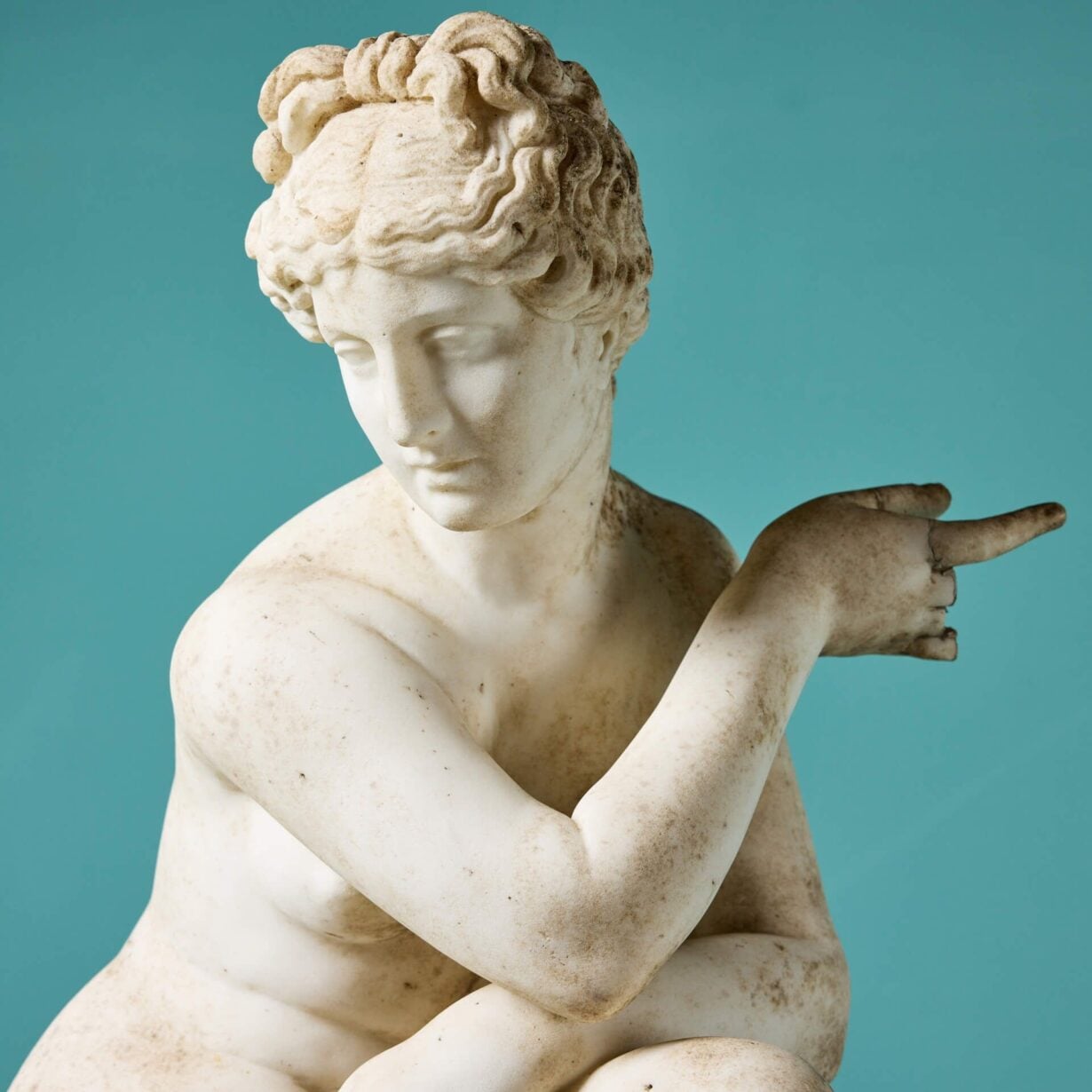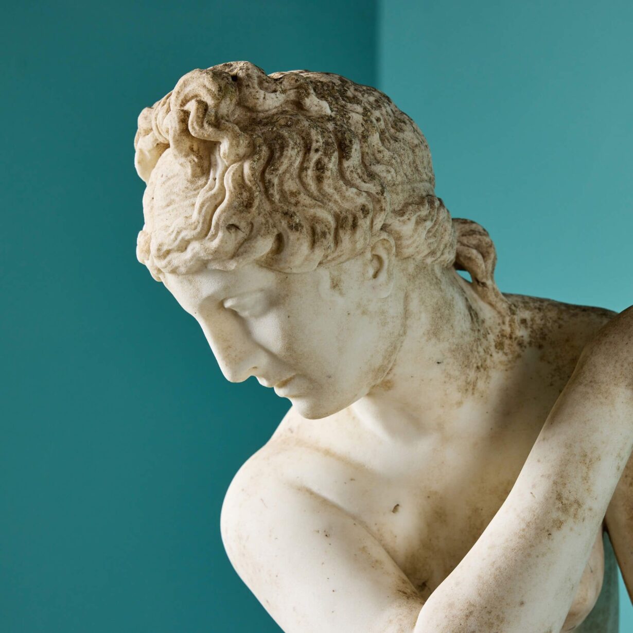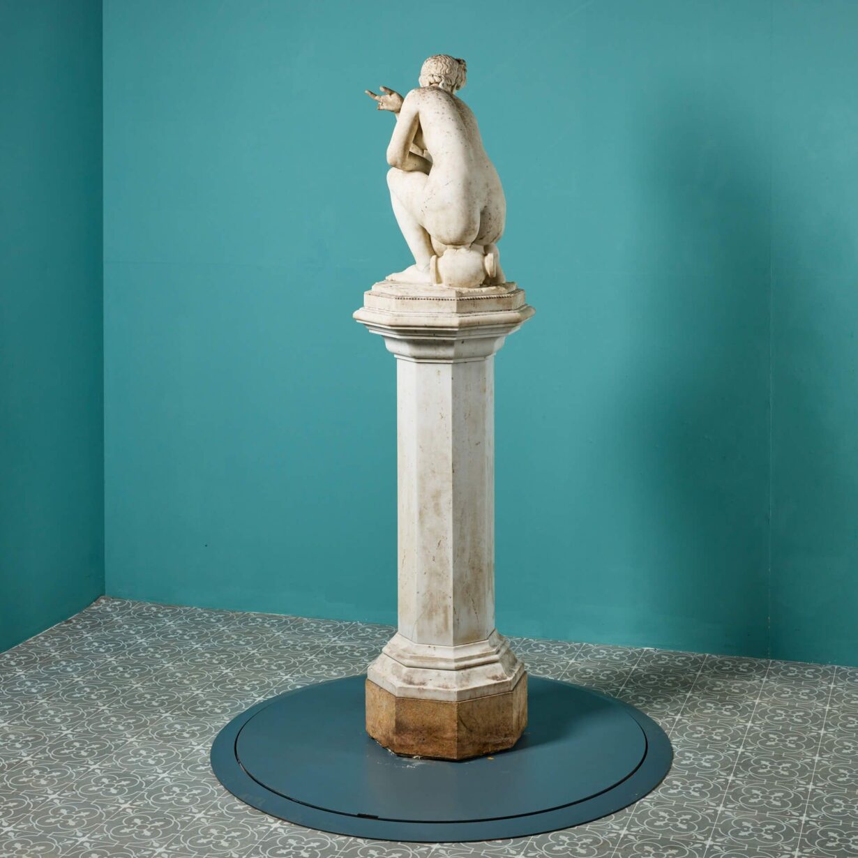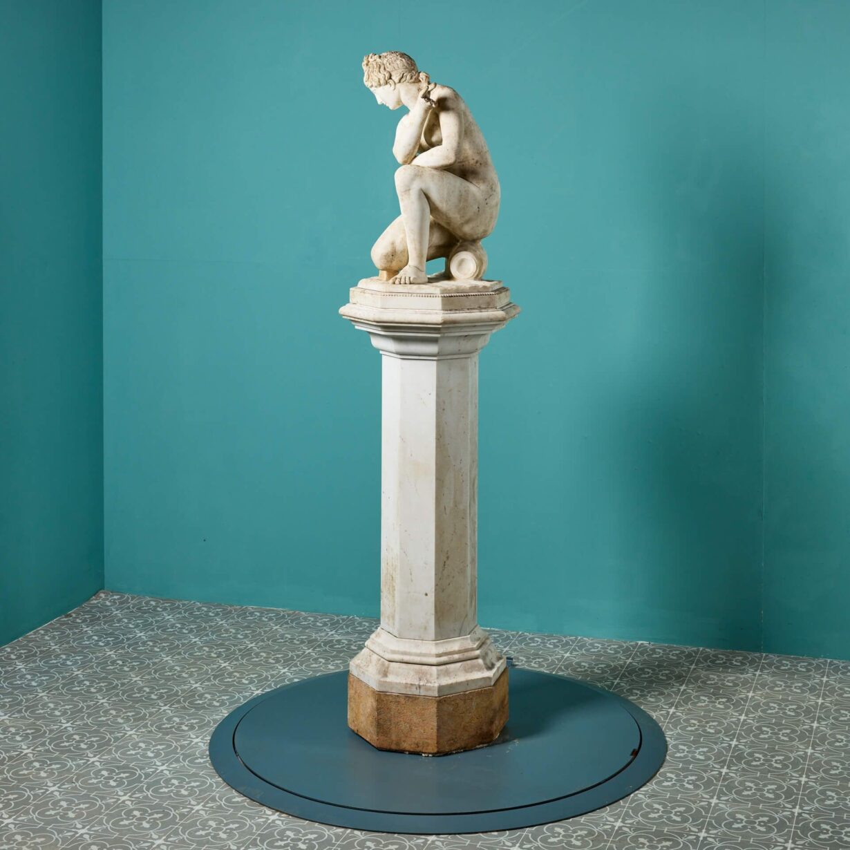 back to topA 19th century antique marble sculpture of Aphrodite also referred to as the ‘Crouching Venus’ on an octagonal pedestal. It is based on the antique Roman statue that forms part of the Royal Collection. This beautiful example once formed part of a private collection in Oxfordshire where it was a focal point within a traditional English country garden.
