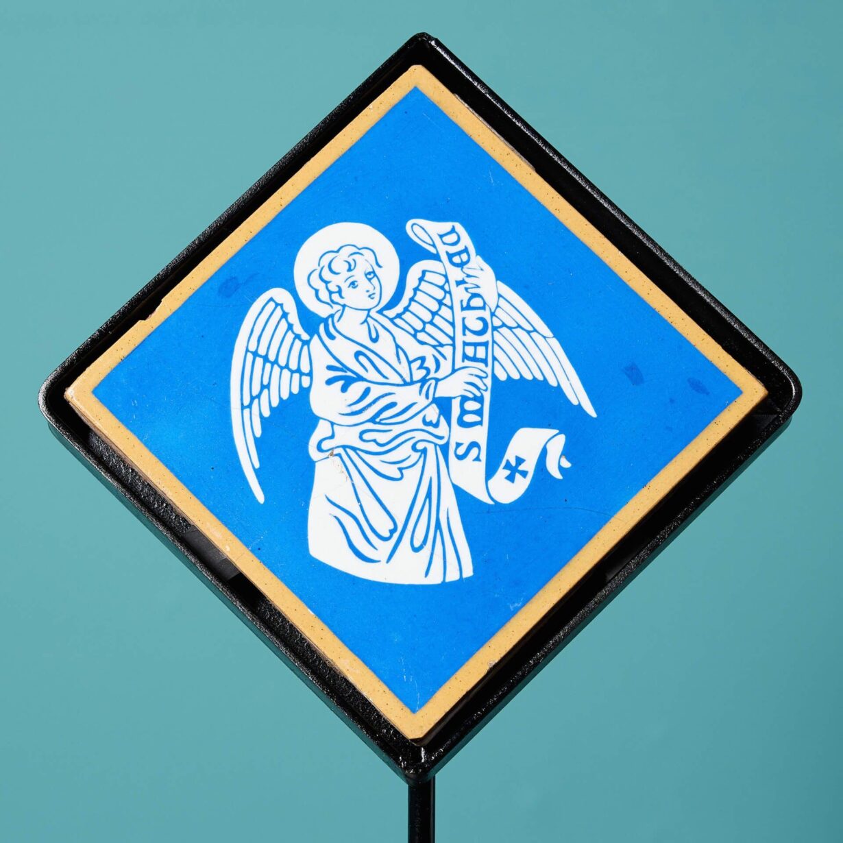 Displayed on a custom made steel stand, this tile’s beauty can be admired up close in any period property looking to appreciate 19th century religious designs.