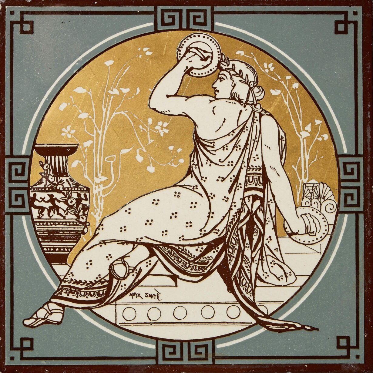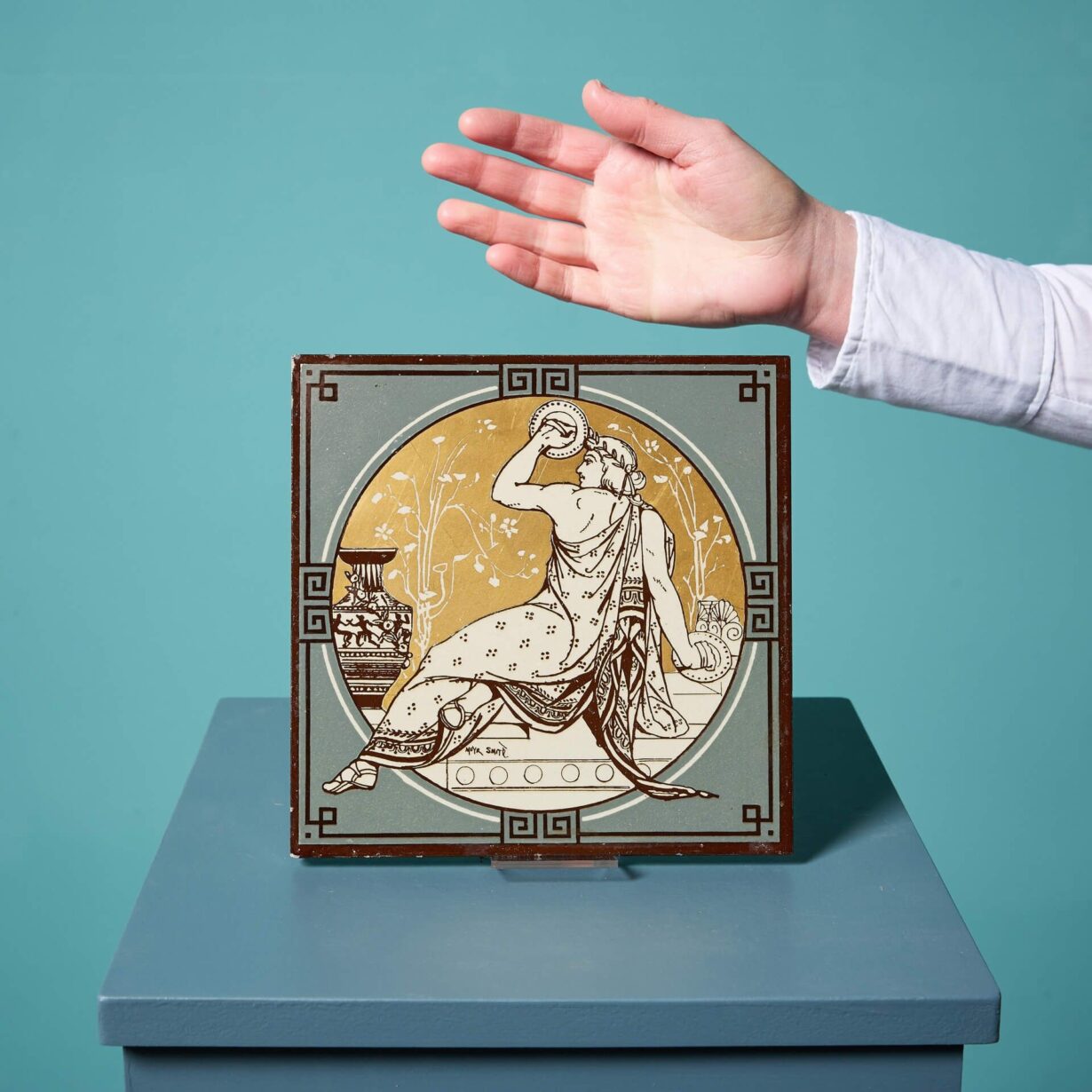 back to topAn antique late 19th century Minton tile from the series ‘Classical Figures with Musical Instruments’ by the artist John Moyr Smith.