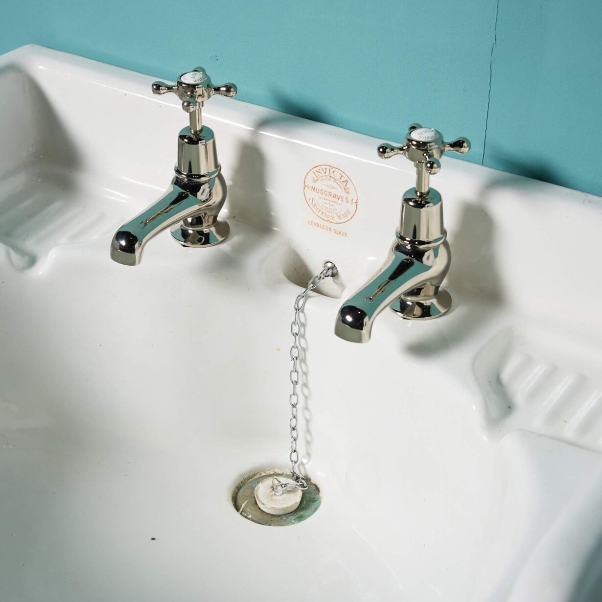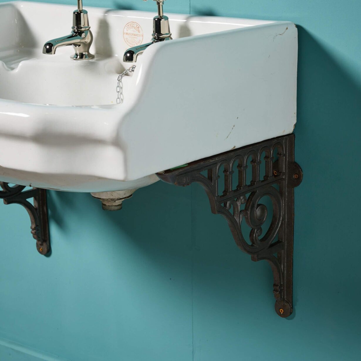 back to topA large antique Victorian Musgraves sink in an Invicta model with cast iron wall brackets.