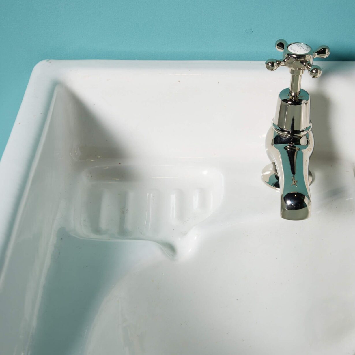 Displaying a quality style this elegant sink showcases decorative soap dishes and a charming scrolling pattern to the brackets only, a stunning new addition to a vintage style ensuite or main bathroom in any period property.