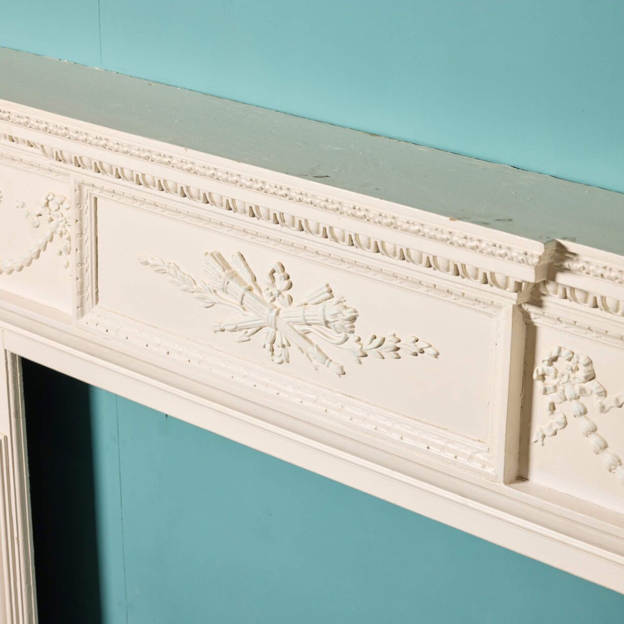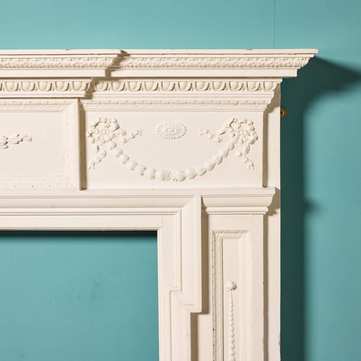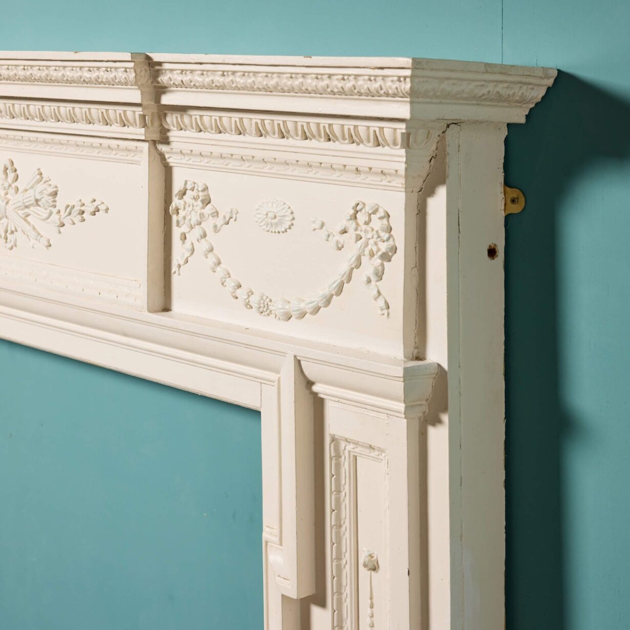 back to topAn antique Neoclassical style fireplace sourced from a hotel in Newquay, England. Made in pine and composition, this late 19th century fire surround is a striking piece, bringing grandeur to any period property. Its style and stature make it an impressive new addition for a main or reception room.