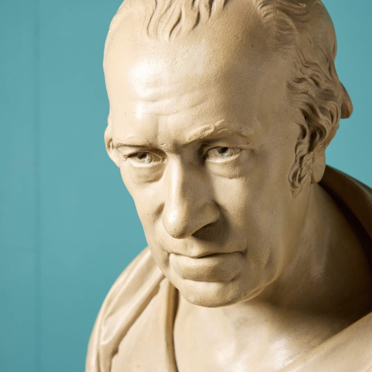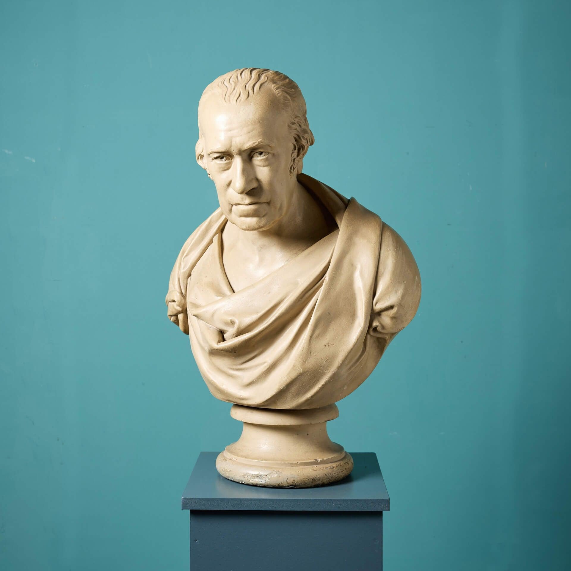 back to topAn antique plaster bust of James Watt in the style of Sir Francis Chantrey (1781-1842).