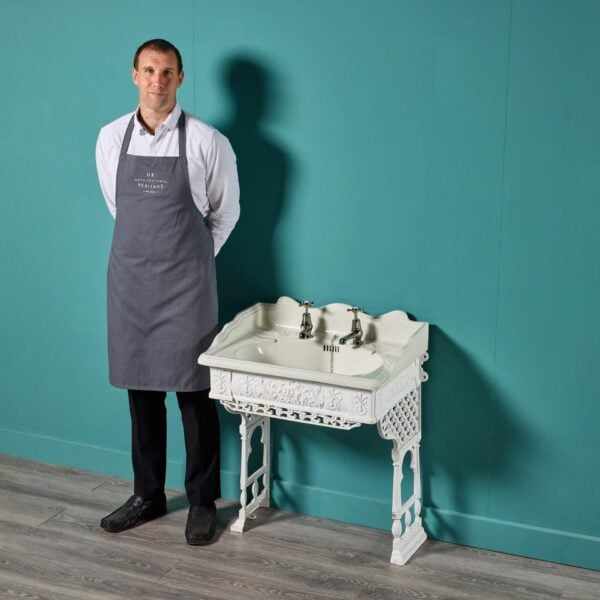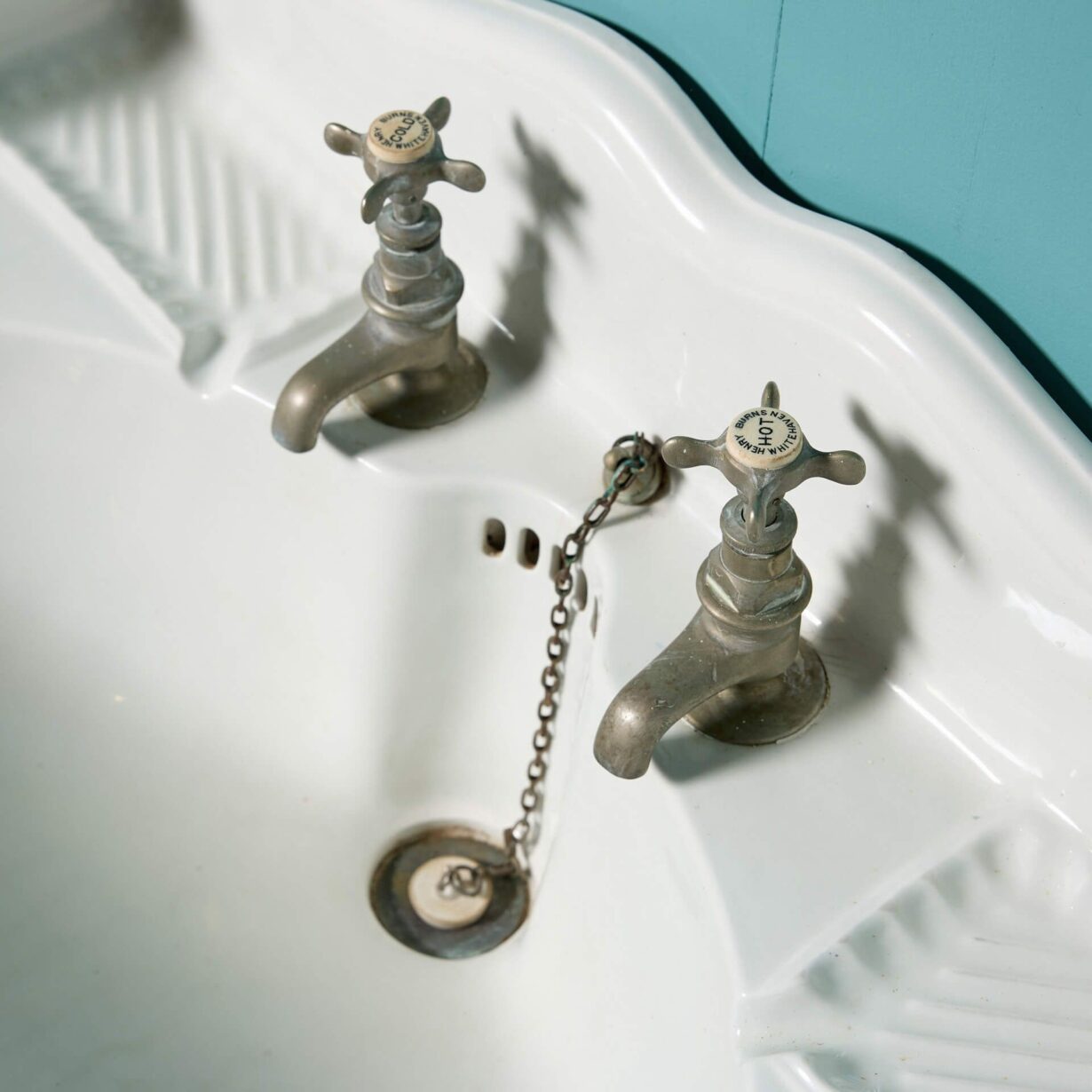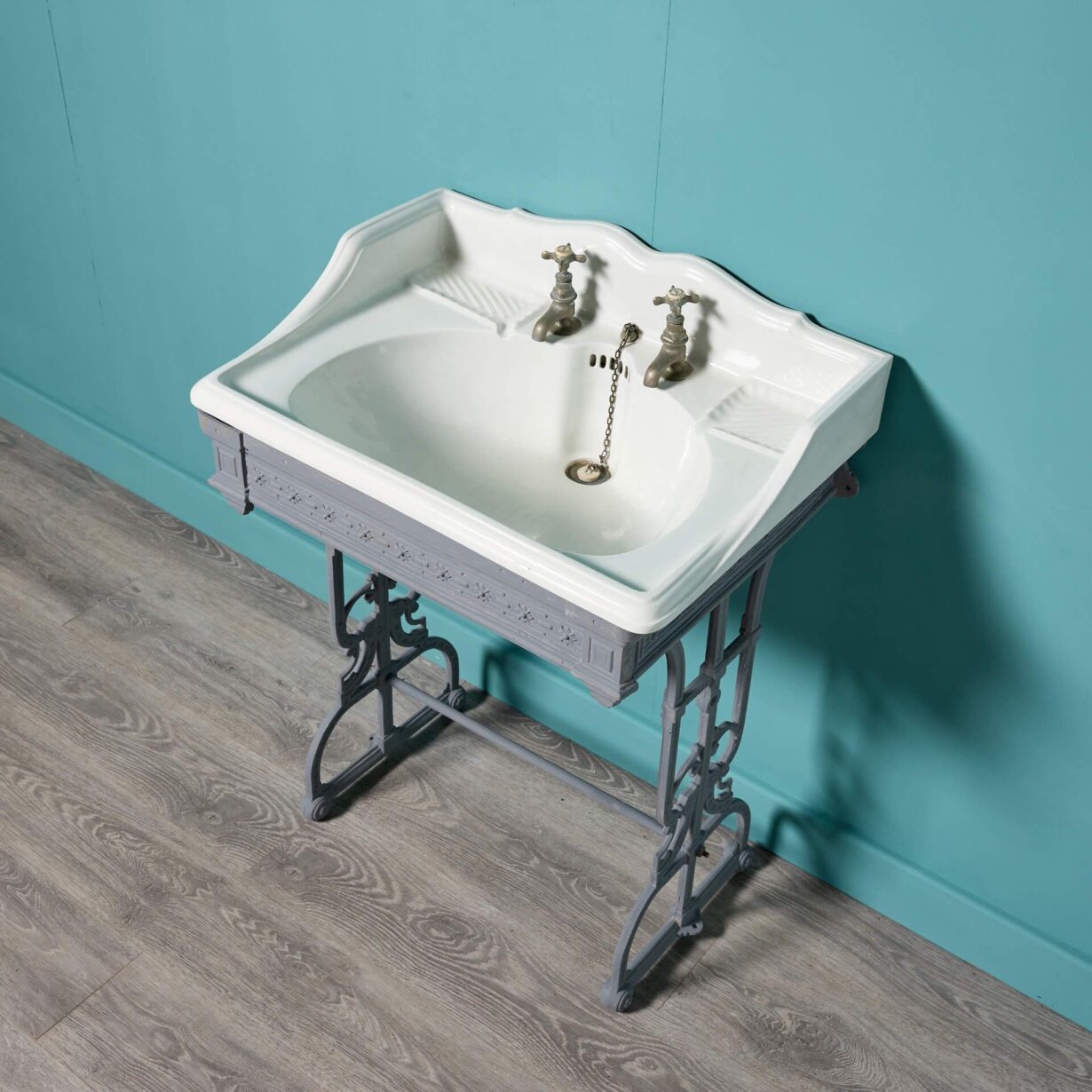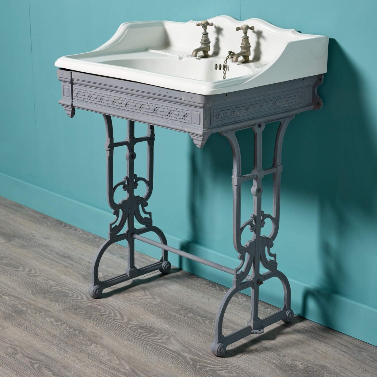 back to topAn antique porcelain sink with a cast iron stand. This Victorian sink would be a beautiful addition to a vintage bathroom or period style cloakroom.