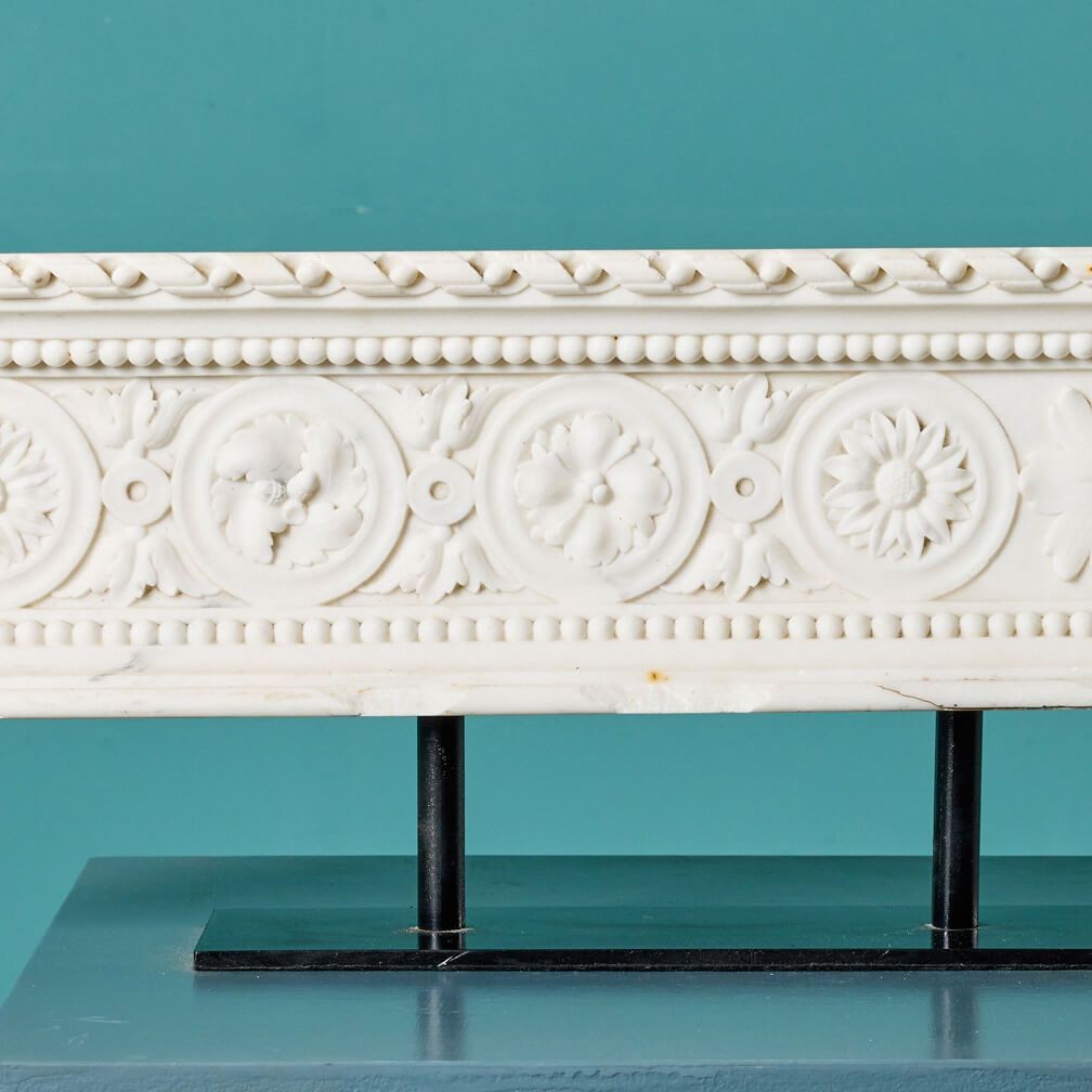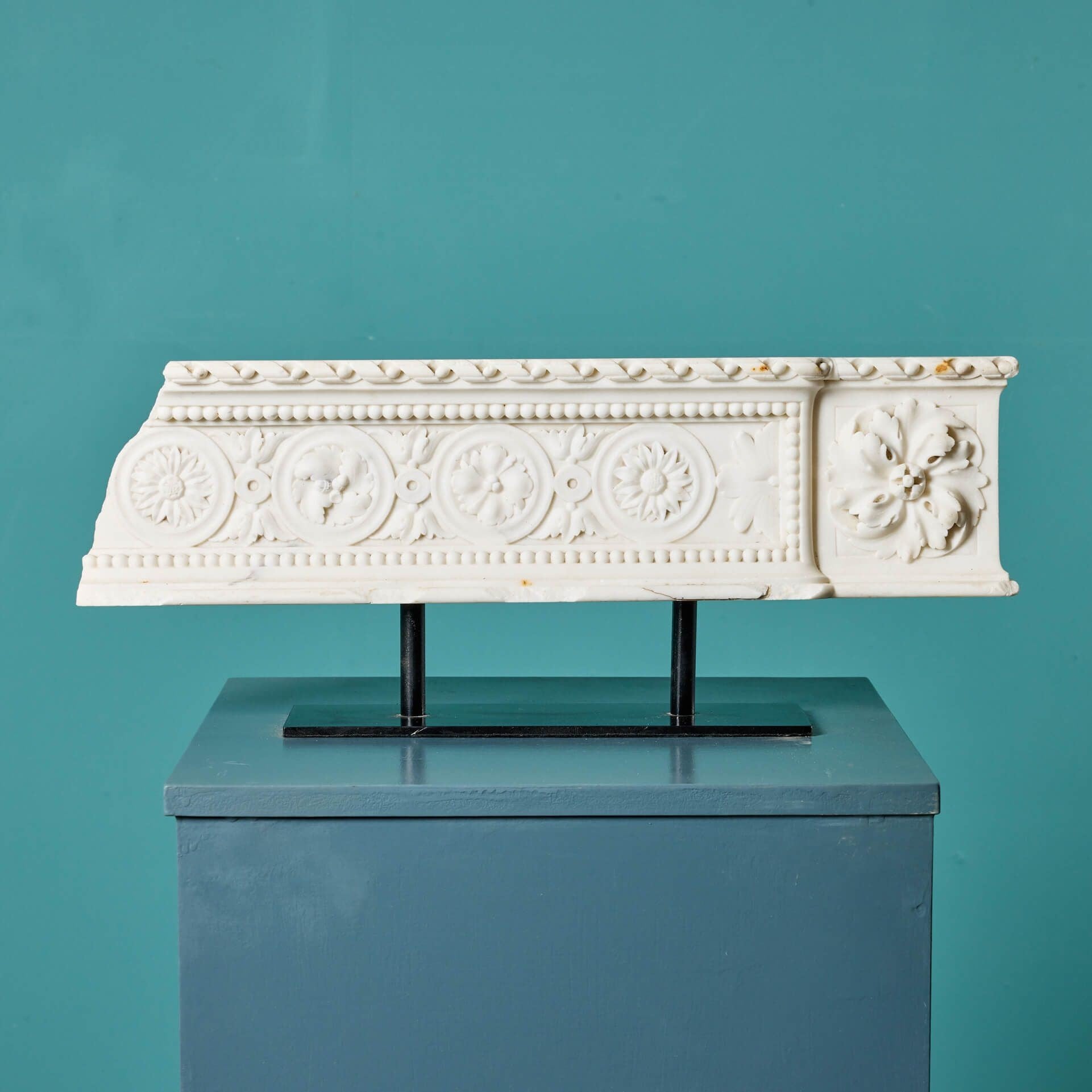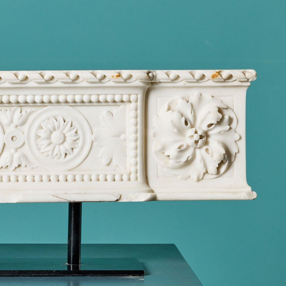 back to topAn antique architectural white statuary marble fragment. Dating to circa 1850, this French fragment is in Louis style showcasing quality carvings in a stylised floral pattern accompanied by egg and dart moulding.