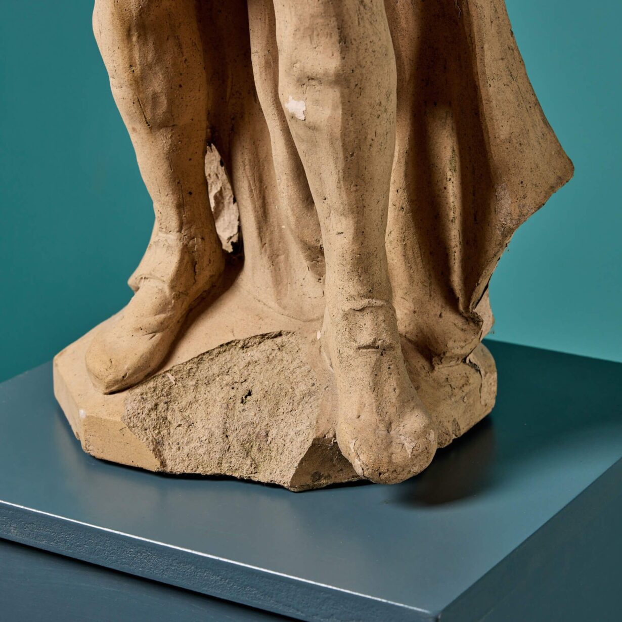 An antique of English history, this statue dates from circa 1880. It is exquisitely detailed and has a beautiful buff terracotta colour that makes for a striking statement piece in any garden or interior.