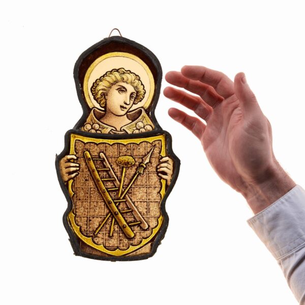 Complete with hoop to the top, this roundel is perfect for hanging in a window or in front of a light source where the colours will come to life.