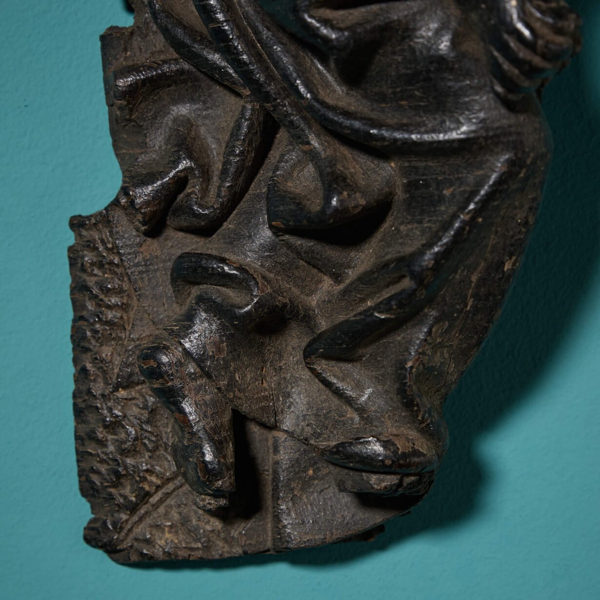 back to topAn antique Tudor style oak wall carving of a recumbent figure dating to circa 1650. Deeply carved by a 17th century woodworking artisan, this carved fragment has a three-dimensional presence as if peering from the wall. The reverse is fitted with a hook, ready for adding interest to a wall in your interior.