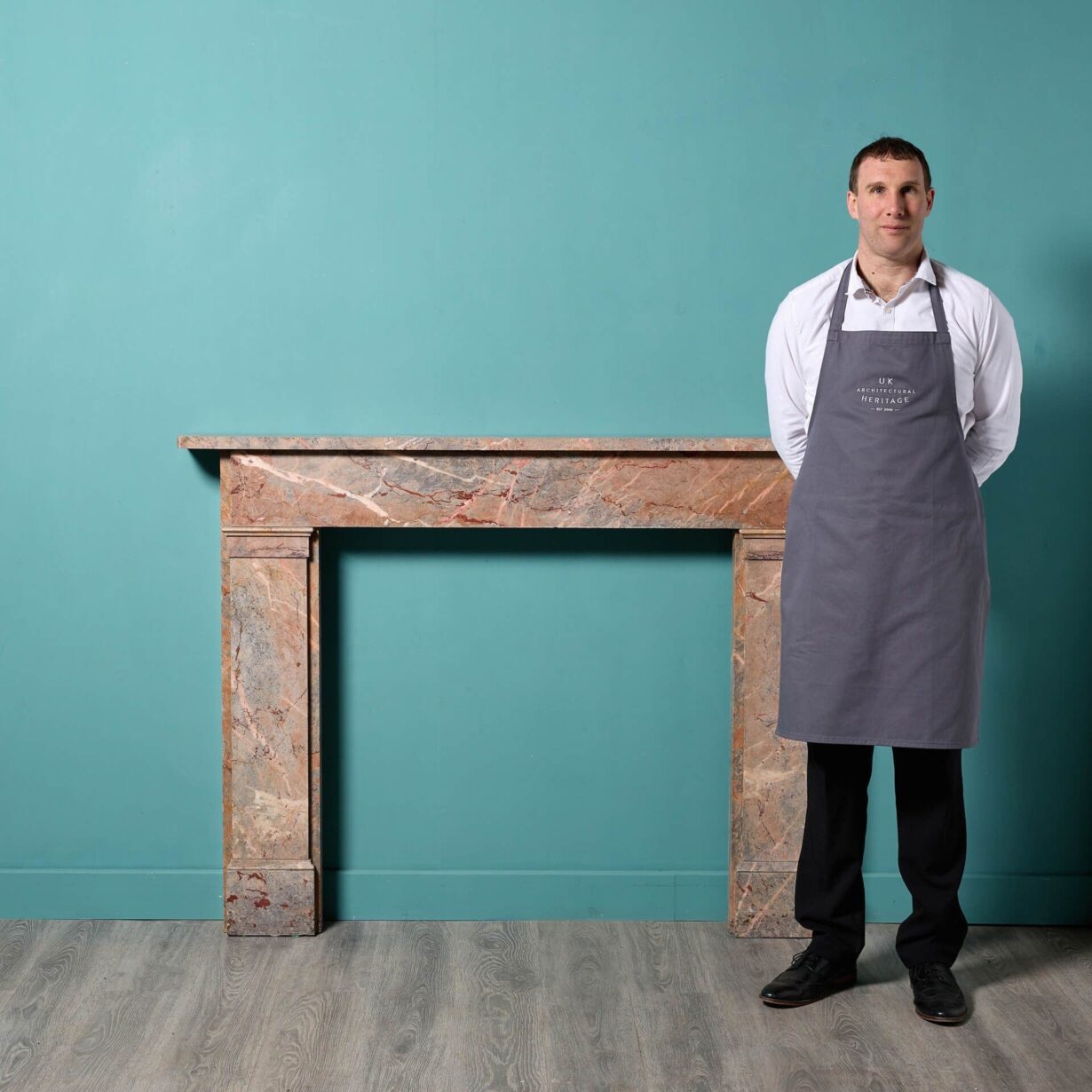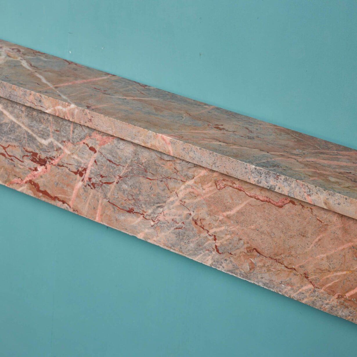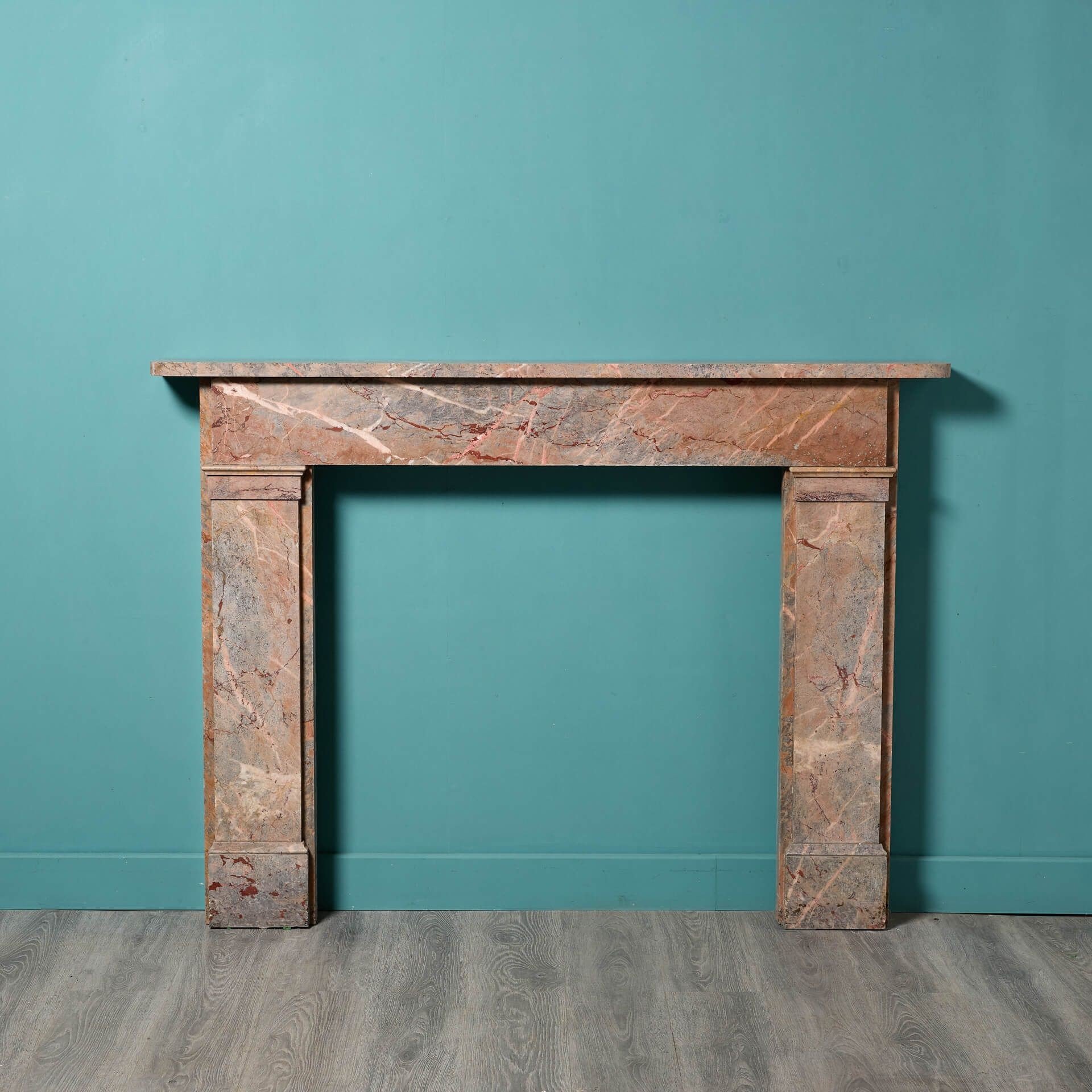 Made from bohemian breccia marble, a soft pale red colour accompanied by darker veining, this antique fireplace has a neutral tone and smart proportions to suit a wide variety of settings traditional and contemporary alike.