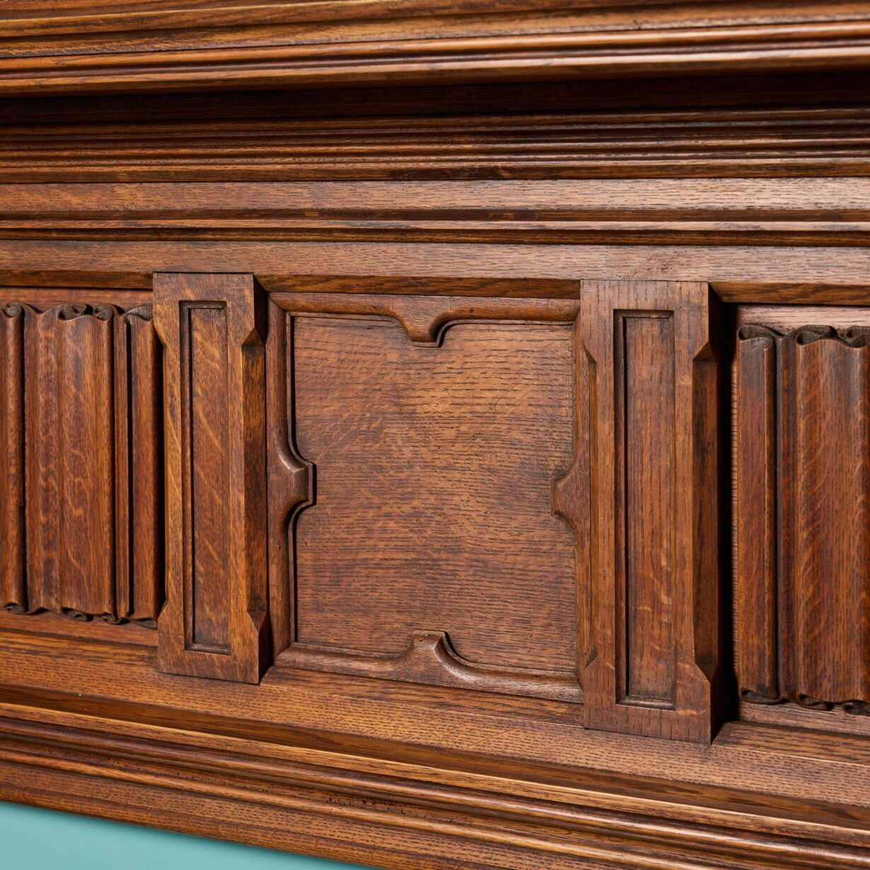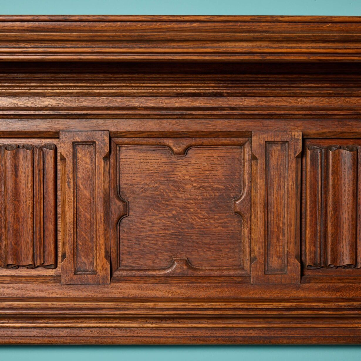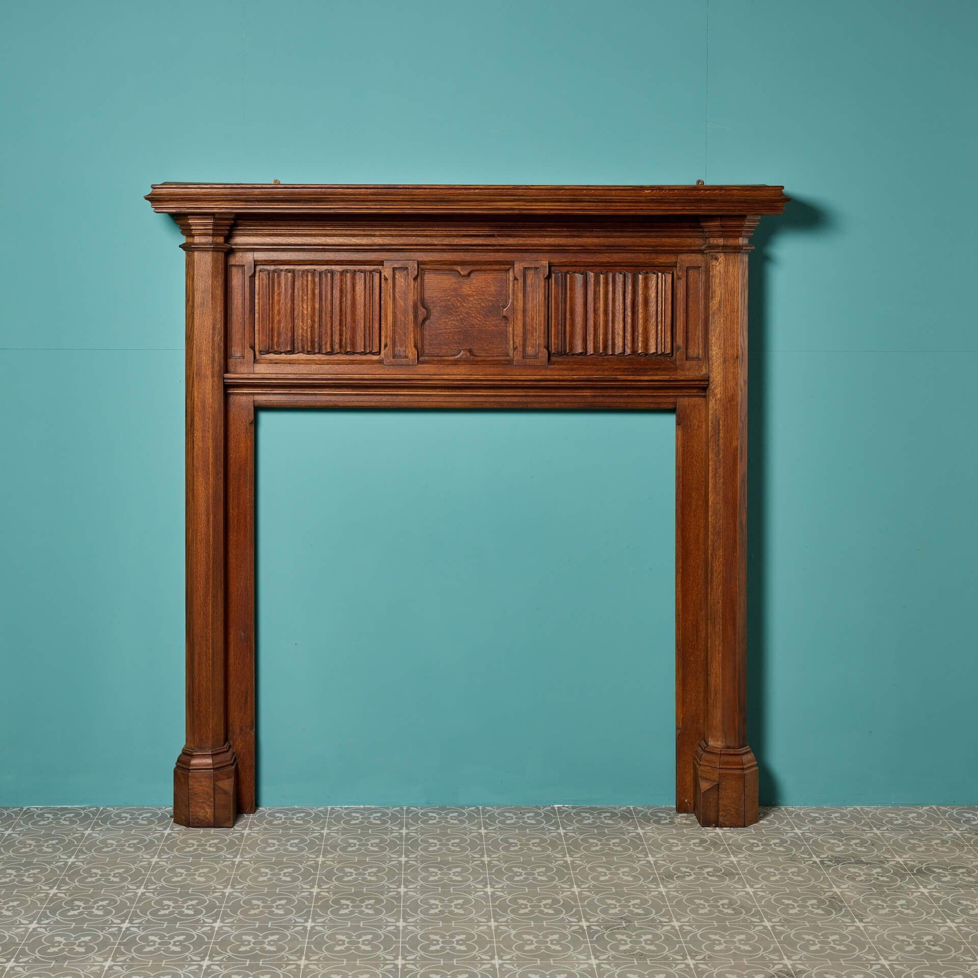 back to topA beautifully crafted antique Victorian oak fireplace. This impressive fire surround dates from circa 1900. Its simple yet elegant design has stood the test of time, with its surfaces smooth and its stature strong. Features include linenfold panels and a stylised quatrefoil frieze. This Victorian fireplace also takes on a gothic style, with its size, dark finish, and double column jambs. It would certainly make an impression in an English country property, or period townhouse.