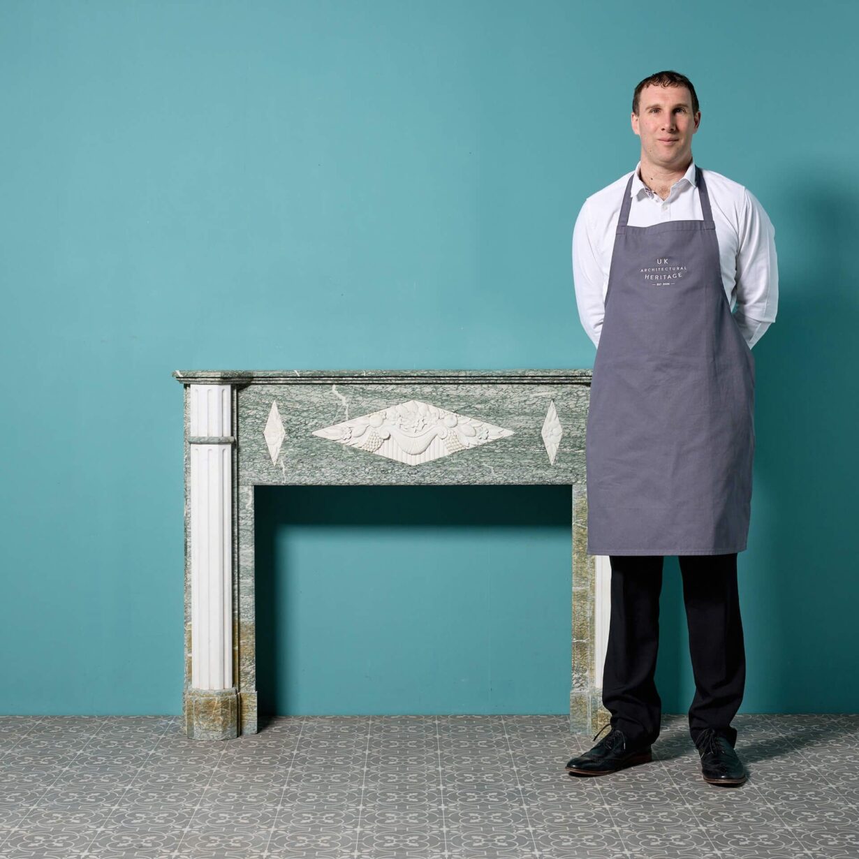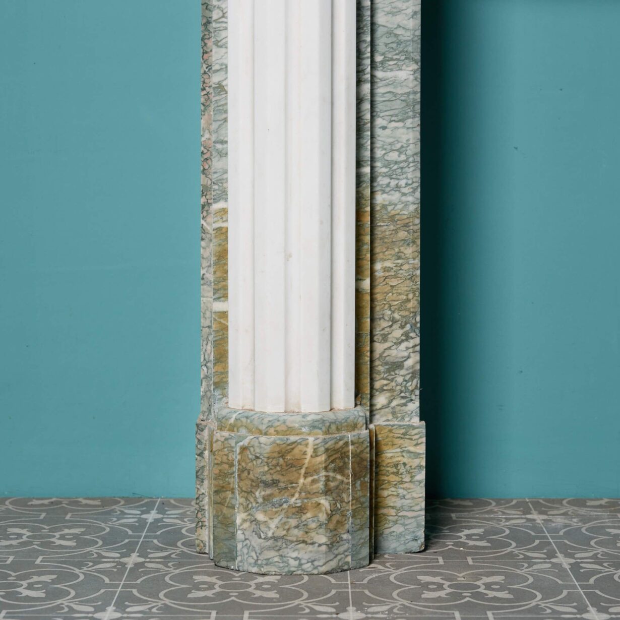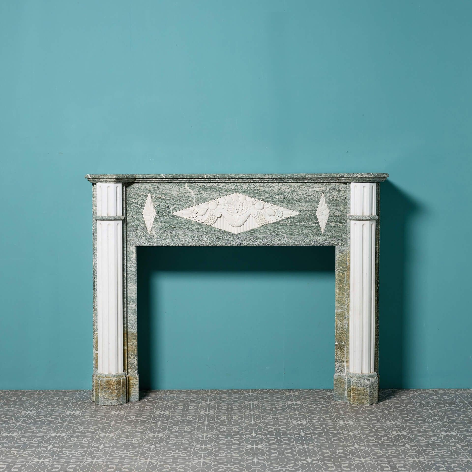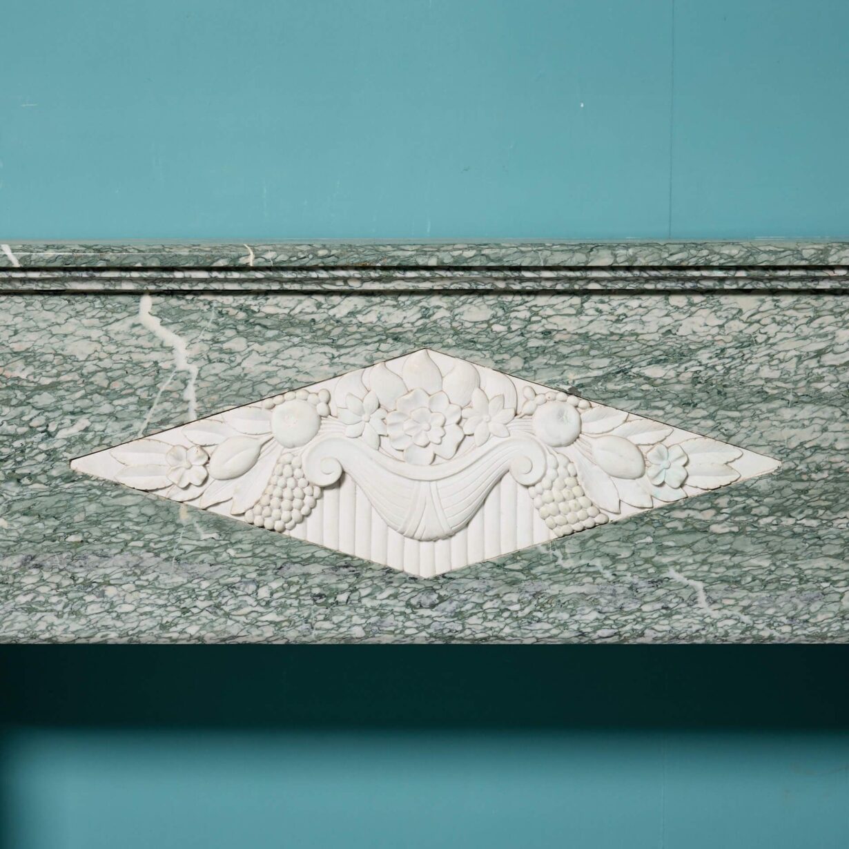 back to topAn antique French Art Deco period marble fire surround. Constructed in Campan green and white statuary marble, this unusual fireplace showcases a carved centre tablet and fluted jambs. You can just imagine it as a central piece in the reception room of an Art Deco style townhouse or country property.