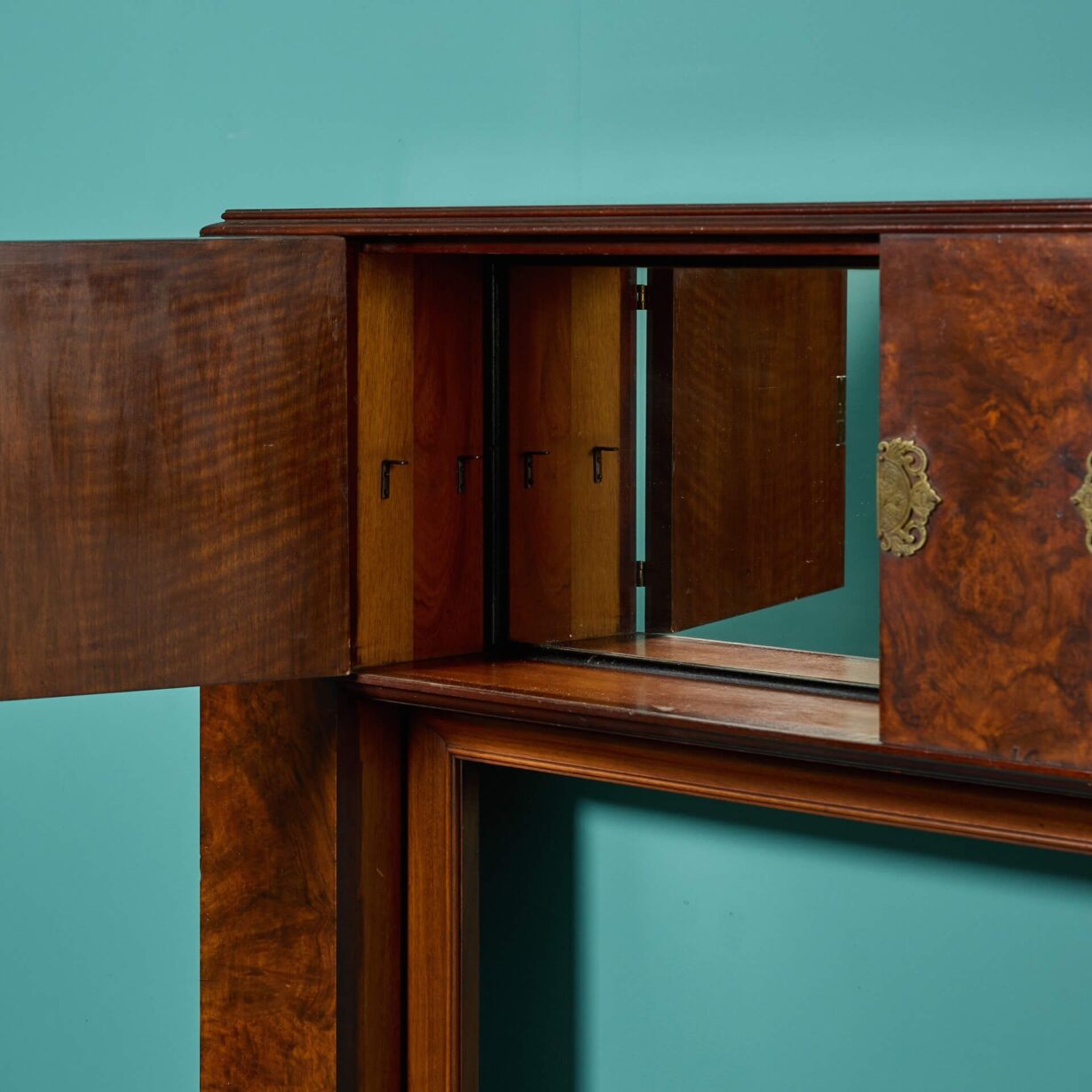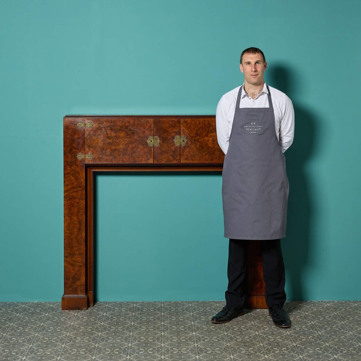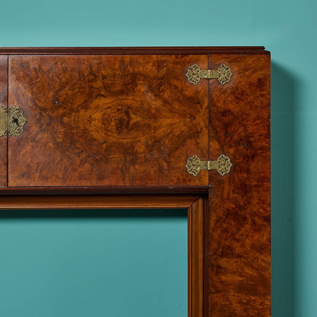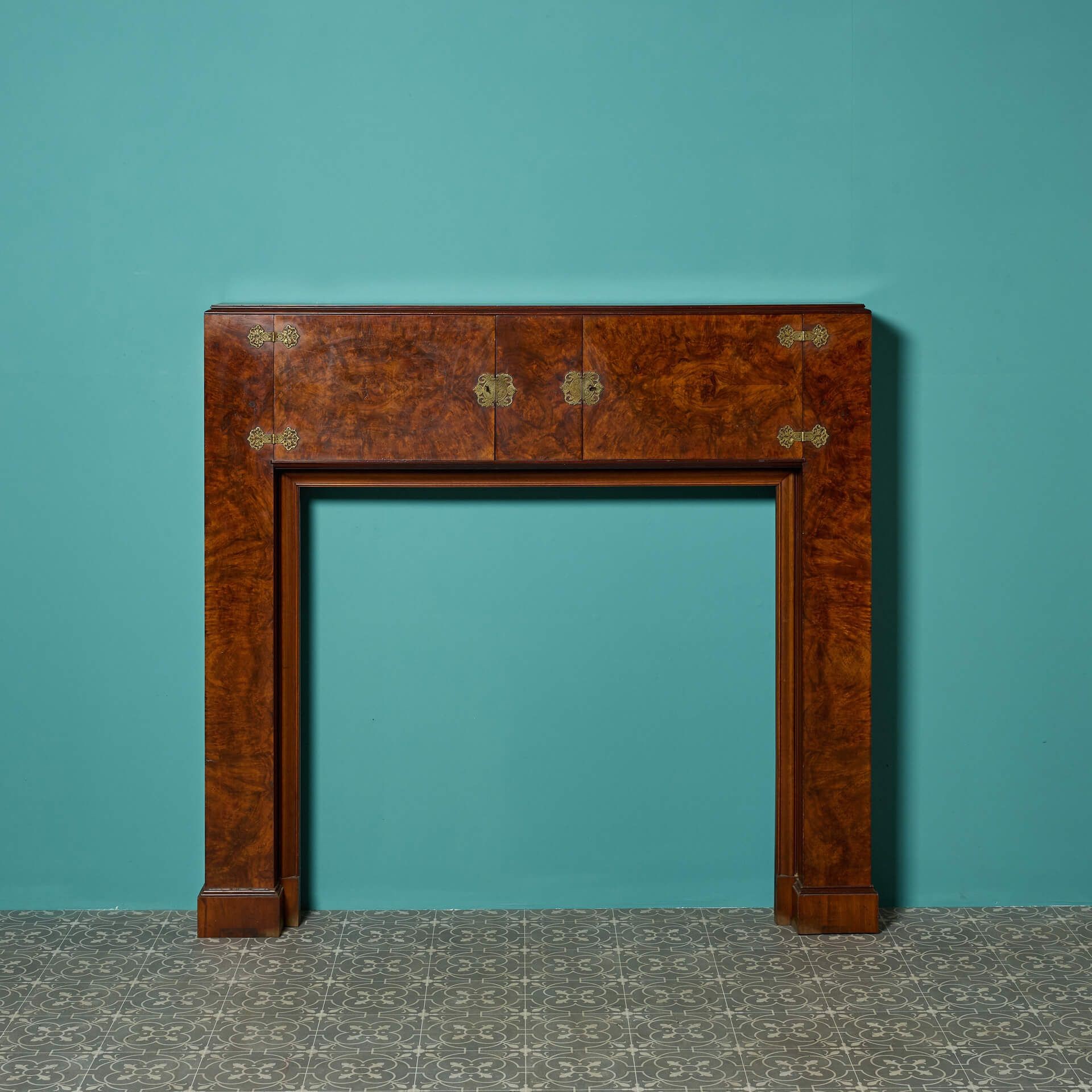back to topA reclaimed Art Deco Style burr walnut fireplace. This unique fire surround has usual built in cabinets in beautifully finished walnut, each secured with decorative brass fittings and hinges.