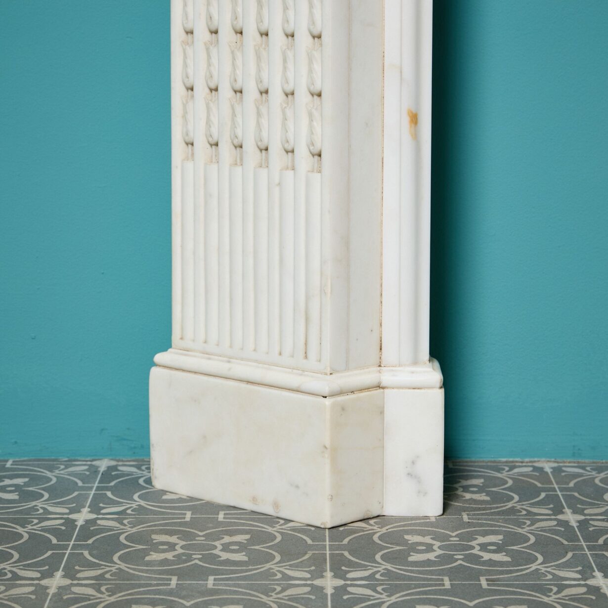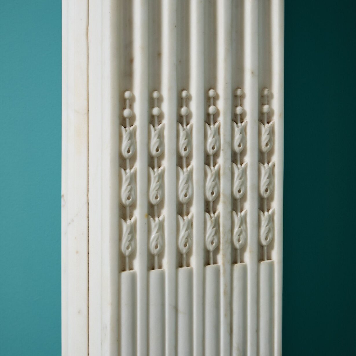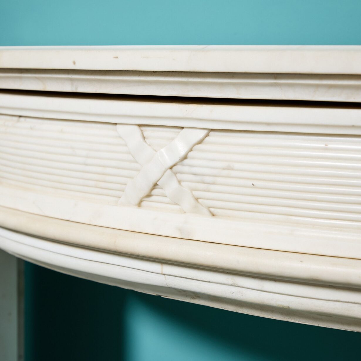 back to topThis stunning antique white marble fireplace dates from the mid 1800s. Made entirely from statuary white marble, it is petite in scale with a curved bowfront rarely seen in antique fireplaces of this era. A mix of styles is present, showcasing distinctly English jambs alongside a finely decorated curved frieze that nods to classical French styles. Fine carving throughout adds to its elegance and grandeur, sitting proudly at the heart of any room. A Georgian-French fireplace of effortless beauty, it can be used to complement a period property or situated in a more modern setting as a historic focal point.
