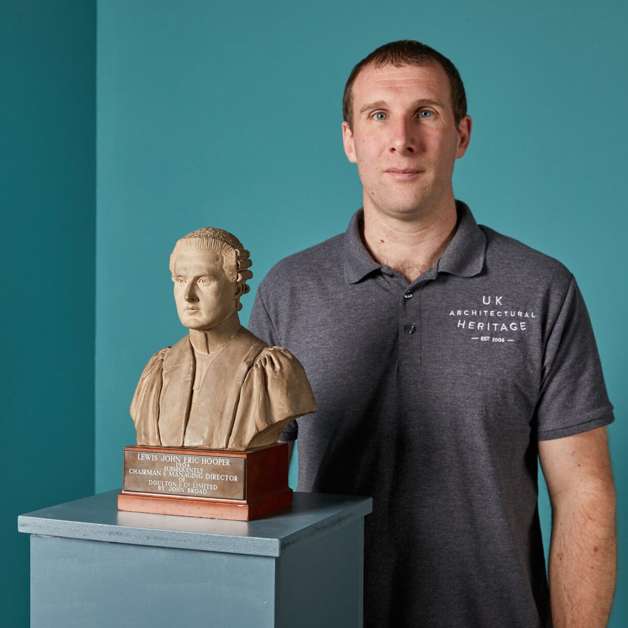 Broad was one of the most prominent artists of Doulton & Co. during the late 19th and early 20th centuries. Specialising in large works, he had a talent for producing vases, statuary and portrait medallions. This stone bust of Lewis John Eric Hooper is just one example of his brilliant work, showcasing his skill and eye for detail. Broad worked at the company – known today as ‘Royal Doulton’ – for 46 years until 1919, making his mark as one of the cornerstones of Doulton’s history and heritage.