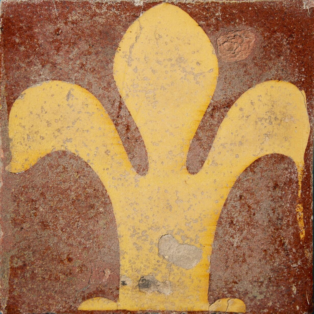 By the mid 19th century, new churches were under construction and many old churches in need of restoration. Dating to circa 1845, this is one such example of a reclaimed floor tile Chamberlain produced, creating beautiful medieval style encaustics like this one for churches across Britain.