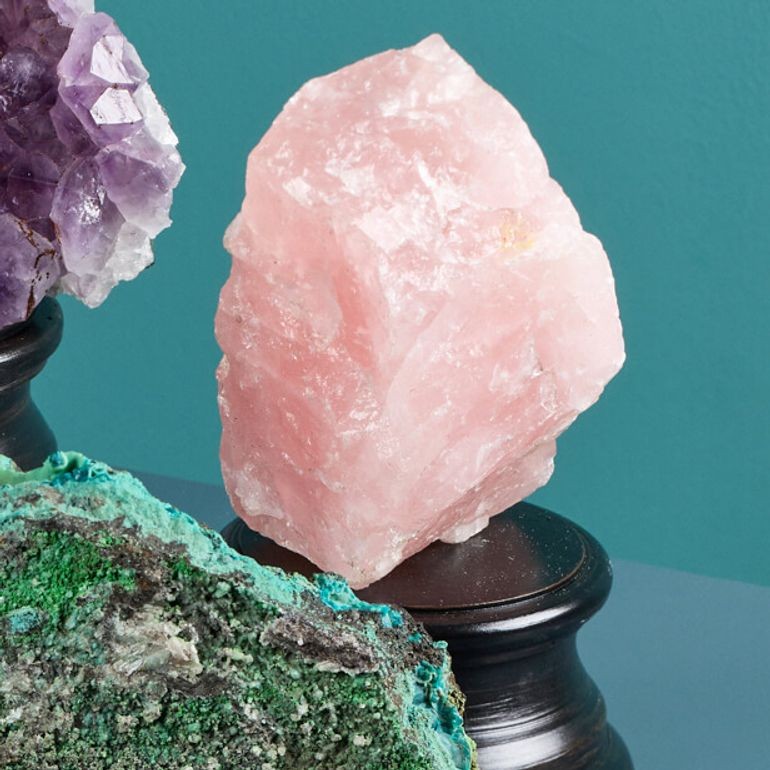 Highlights of the collection include a rose quartz specimen and a vibrant amethyst specimen originating from Brazil. Further details below: