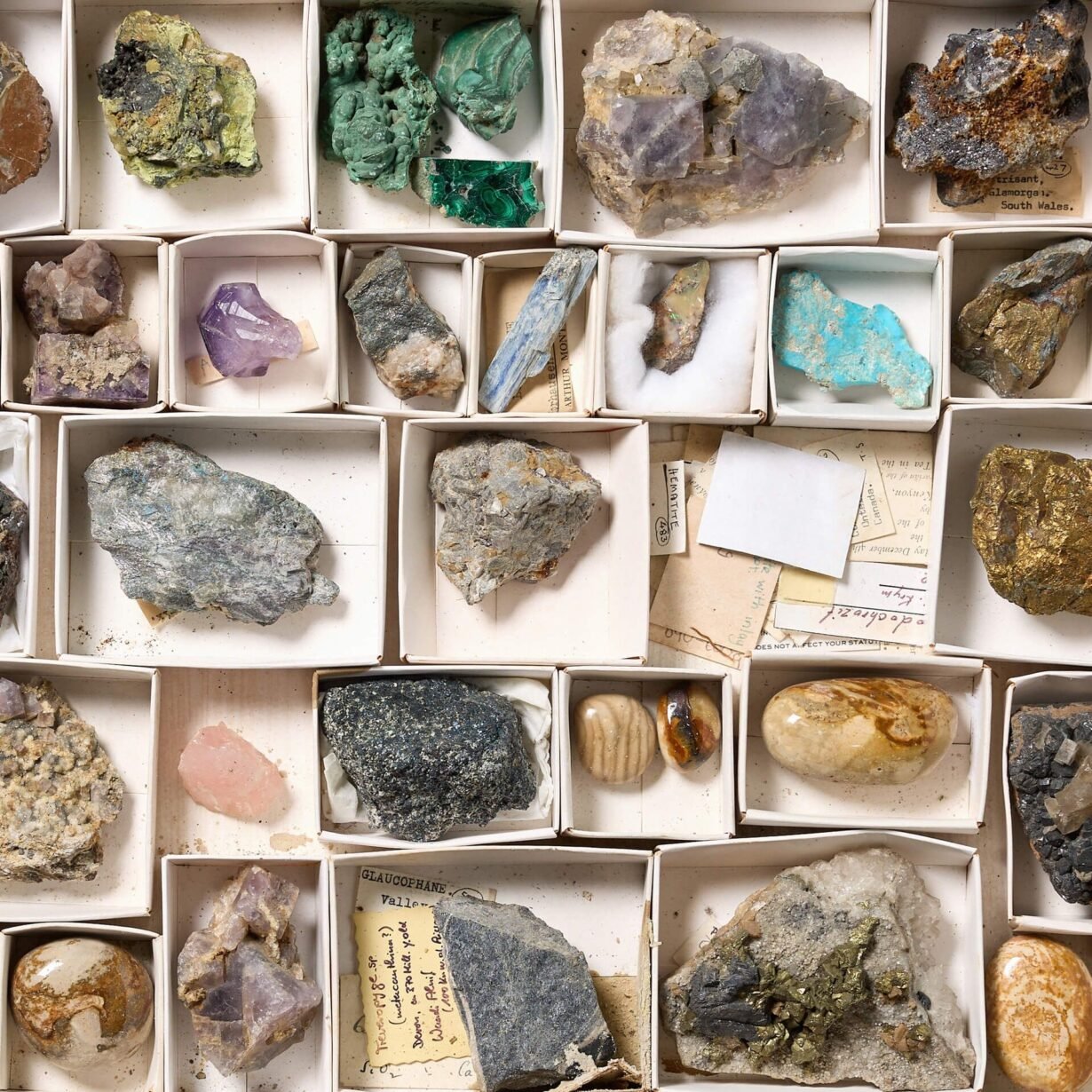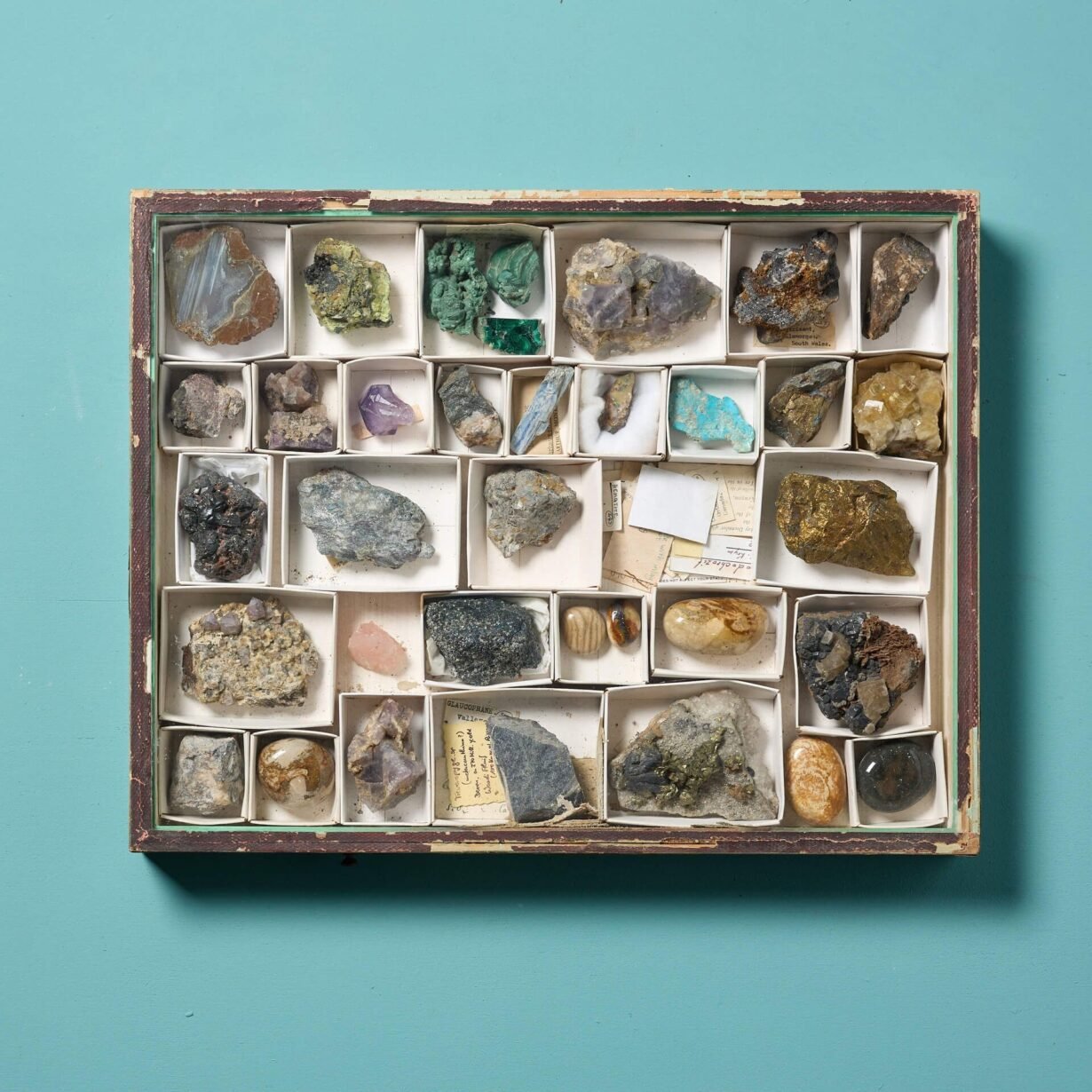 back to topA collection of museum minerals in a display case. Presented in a sleek glazed case with a removable lid, the collection includes 38 European minerals, including amethyst and pyrite, all with their own striking appearance. Each mineral is of a superb quality having come from a museum.