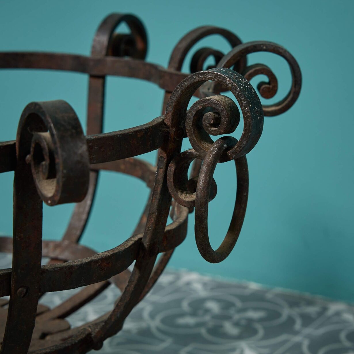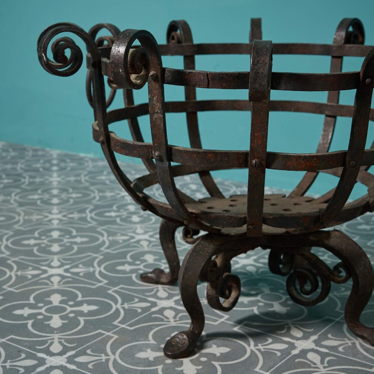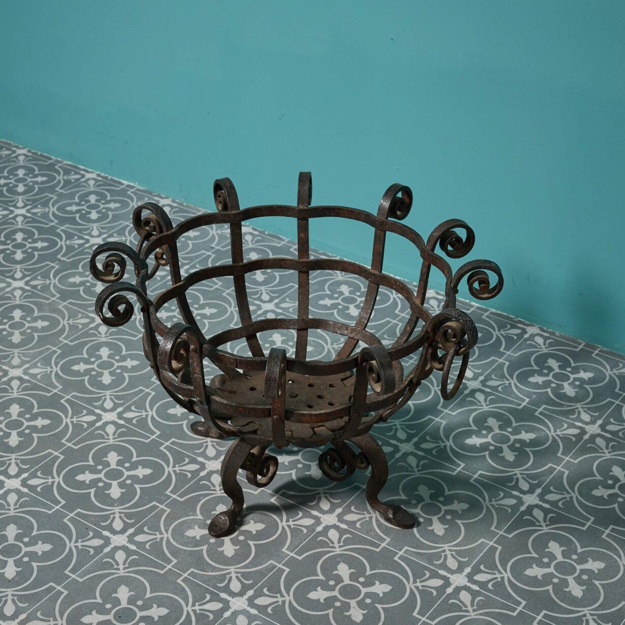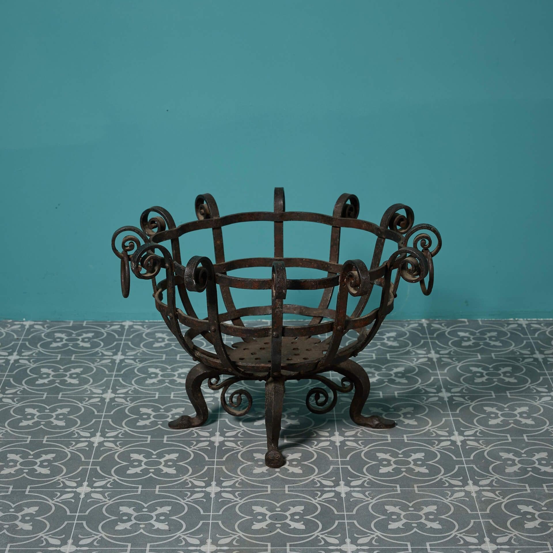 back to topA decorative antique wrought iron fire basket, crafted at the hand of a skilled 19th century blacksmith. Handsomely made in an unusual round shape with defined scrolls and two ring handles, this antique fire basket is instilled with character and in good condition after 175 years of use, ready to take pride of place in any home.