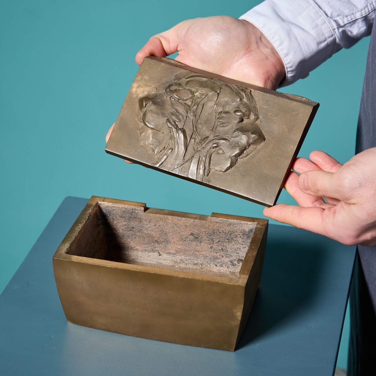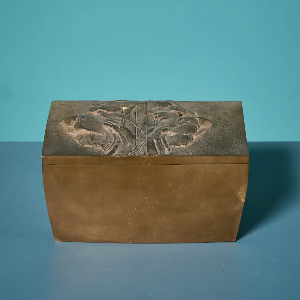 back to topA solid bronze box or decorative casket detailed with lion masks in relief to the lid by acclaimed British sculptor, John W. Mills.