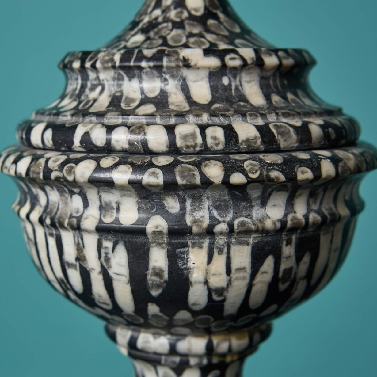 back to topA very rare and unusual early 20th century decorative fossil marble lidded urn, ex. private collection of a gentleman collector.