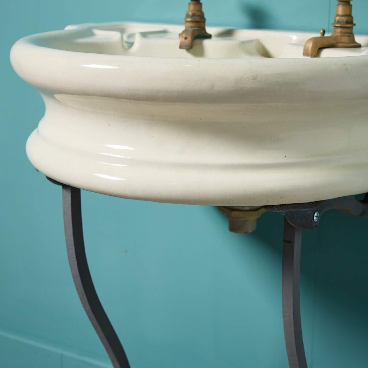 back to topA Doulton & Co antique basin with a floor standing iron bracket, finished in grey primer.