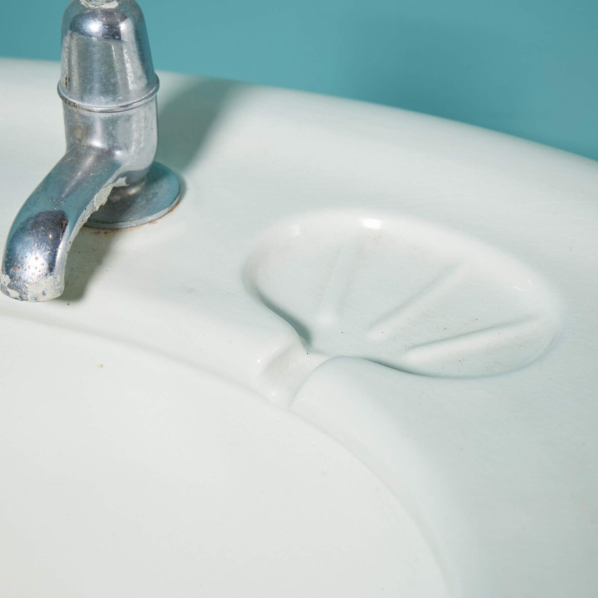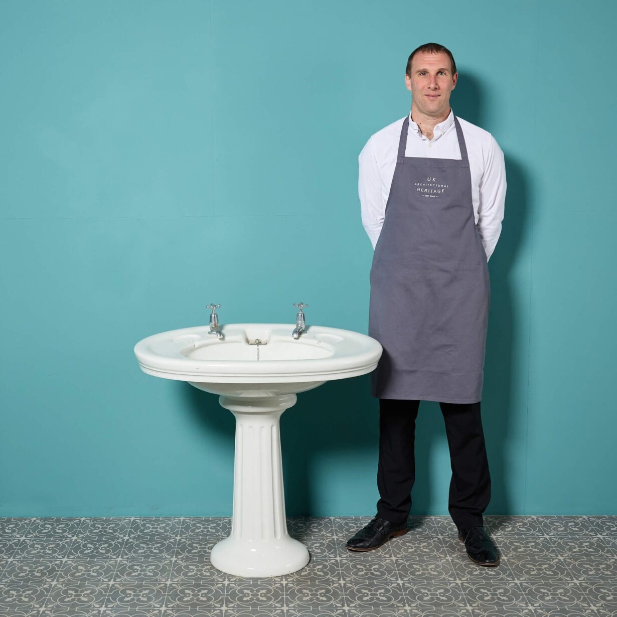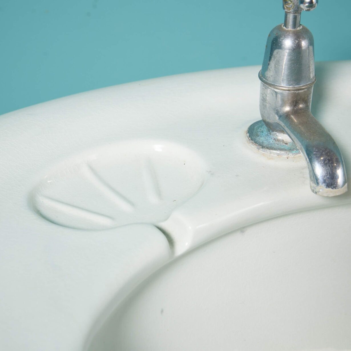 back to topAn Edwardian antique pedestal sink with a large oval shaped basin and fluted pedestal. With its pleasing shape and large scale, this porcelain sink is an elegant wash basin for a vintage bathroom or smart Edwardian style cloakroom. The sink is fitted with a plug chain and waste and is detailed to each side with oval, shell-shaped soap holders.