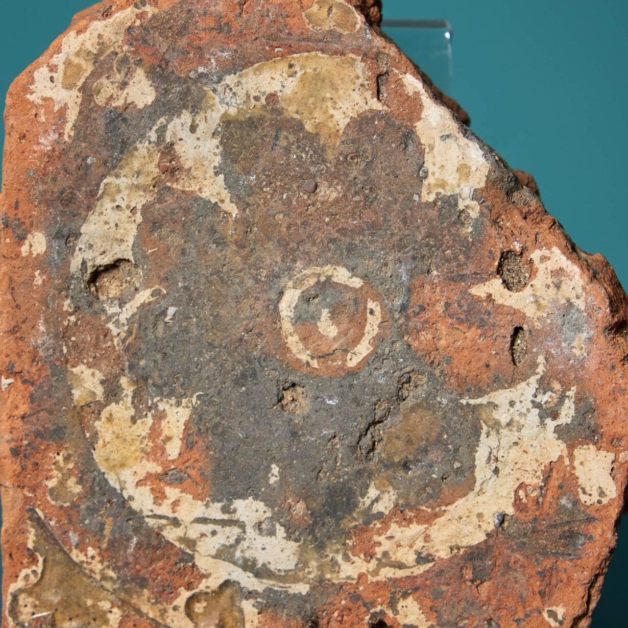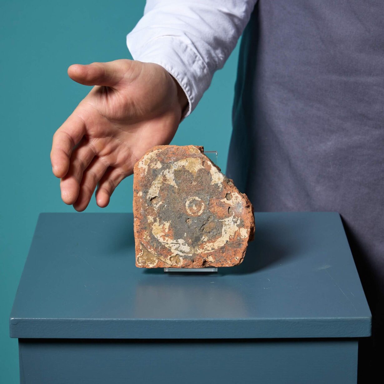 With a distinct depiction of a flower, this may have been the centre of a larger design, or duplicated around a border.