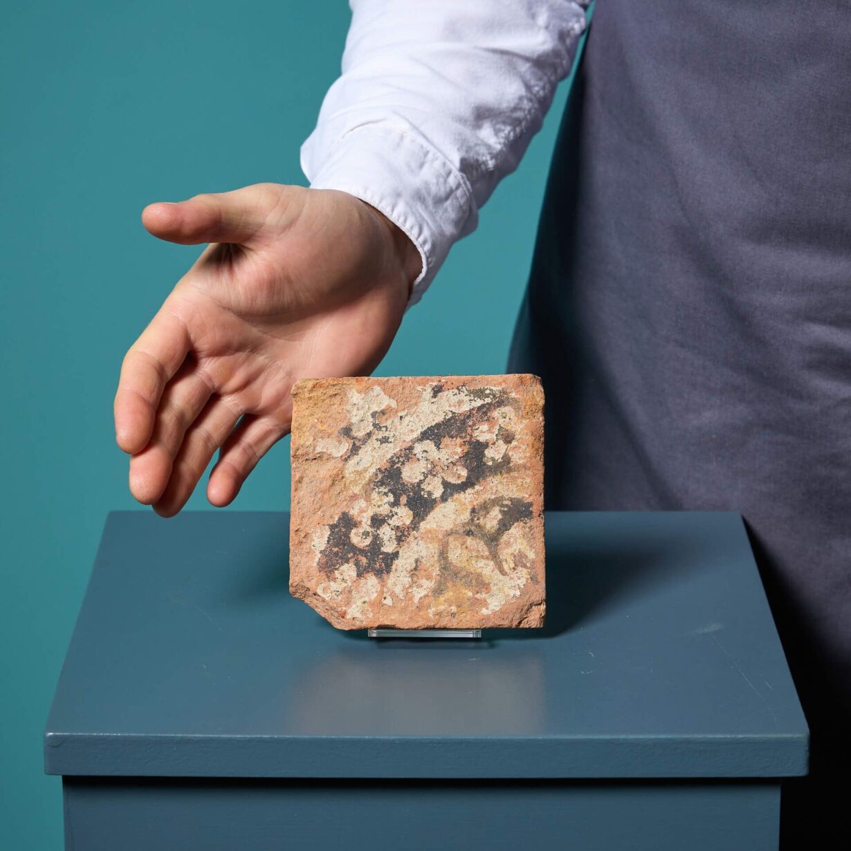 This tile would have been found in a monastery, church or abbey around the 14th to 15th century.