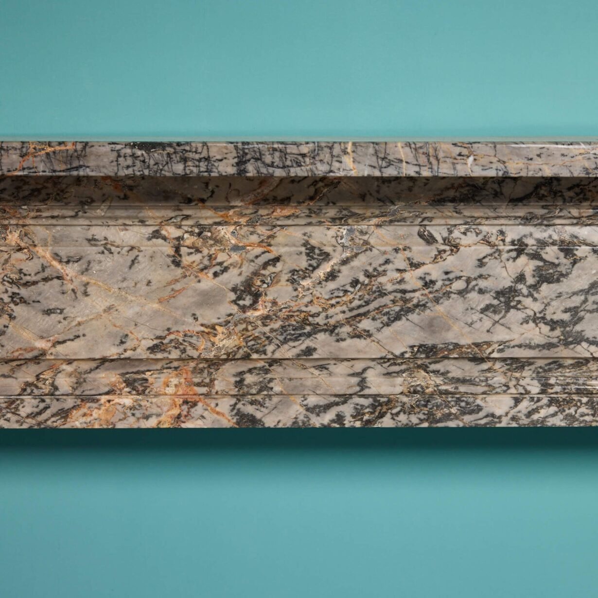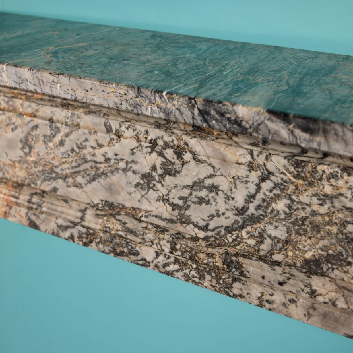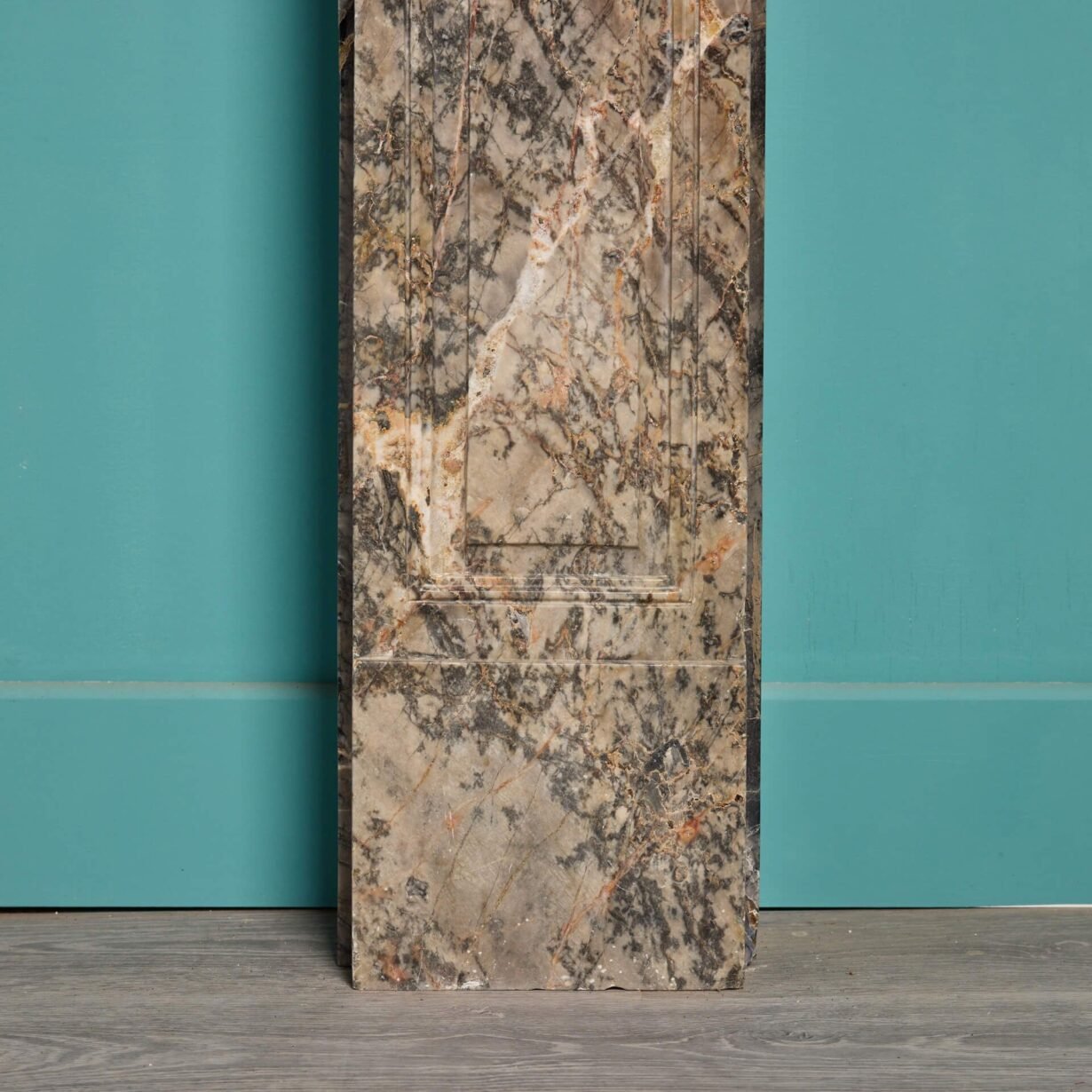 back to topAn elegant wide scale late 19th century English regency style antique marble fire surround, the marble of a rich grey tone similar to Ashburton. Its large scale makes this marble fireplace suitable for a main room in a period townhouse or regency style property, while its clean lines offer a simple and understated look. The natural variations of the grain make for a beautiful feature fireplace, subtly detailed with a panelled details to the frieze and jambs with bullseye roundels to the end blocks.