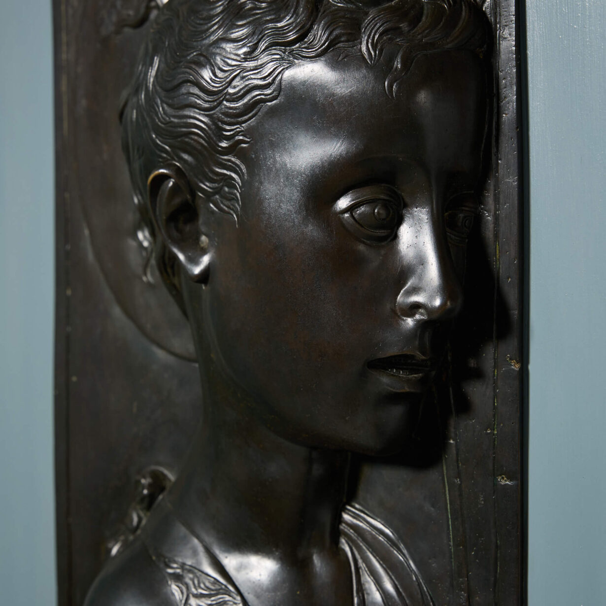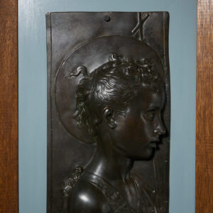 back to topA Framed bronze relief sculpture of St. John the Baptist after Desiderio da Settignano.