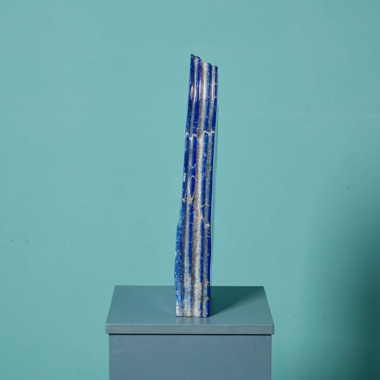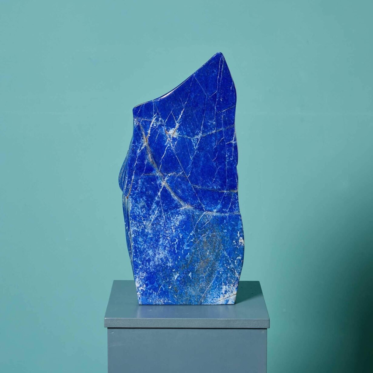 With its naturally occurring brilliant blue colour and striking shape, this exceptional specimen is a stunning sculptural piece for an interior. It will look sensational styled on a plinth against a light toned wall, drawing attention to its vibrant colour and unique freeform shape.