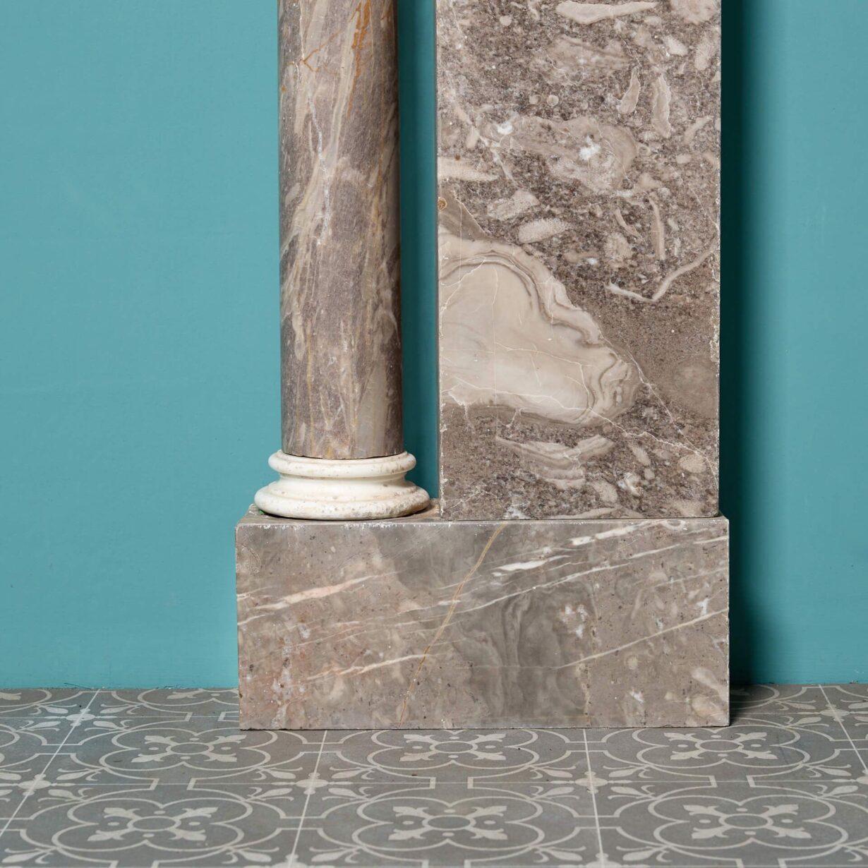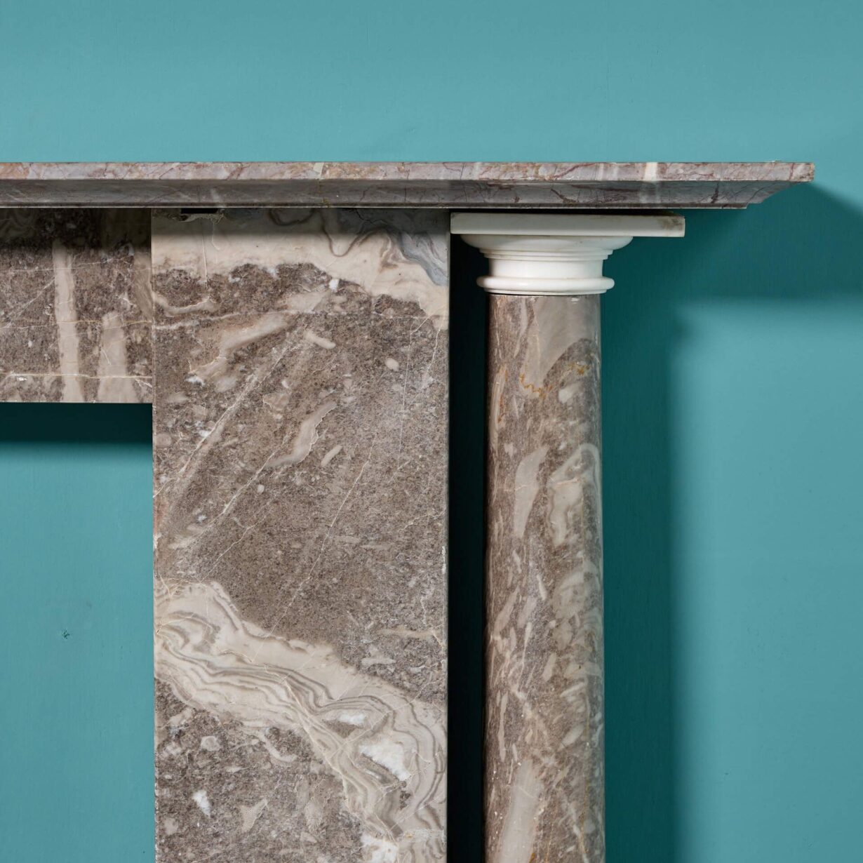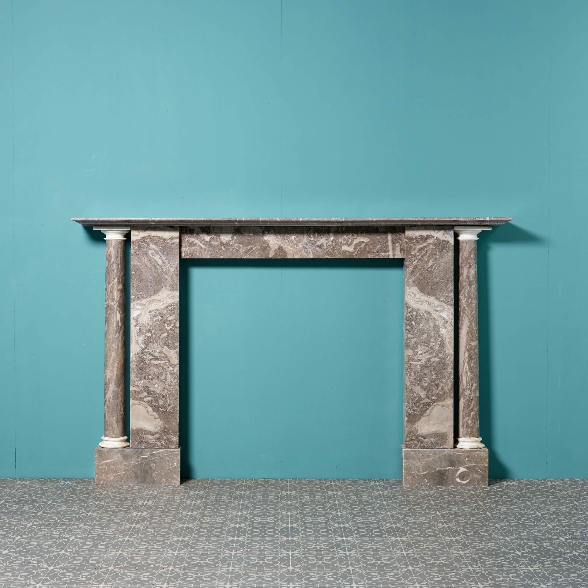back to topAn antique late Georgian Ashburton marble fire surround. In elegant architectural form, its large size makes this marble fireplace suitable for the main room of a period townhouse or Regency style property.