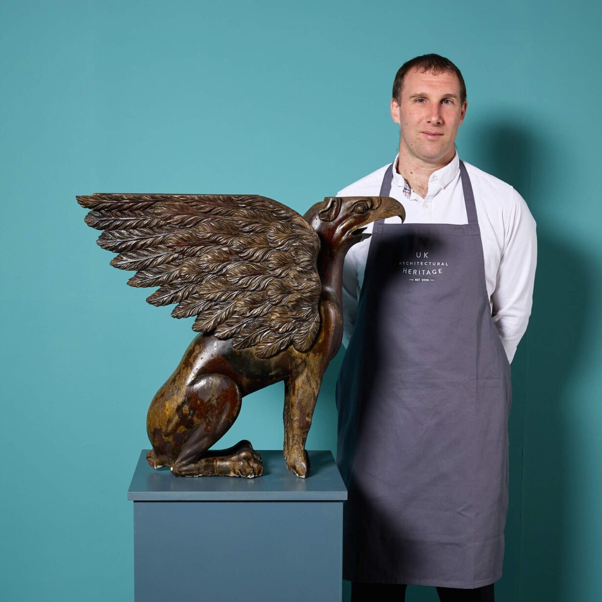 Style alone on an interior pedestal where it’s beauty and craftsmanship can be admired. Alternatively, use alongside the other griffin sculpture we are selling either side of a doorway, staircase or large mantelpiece to bring a sense of drama and symmetry to a space.