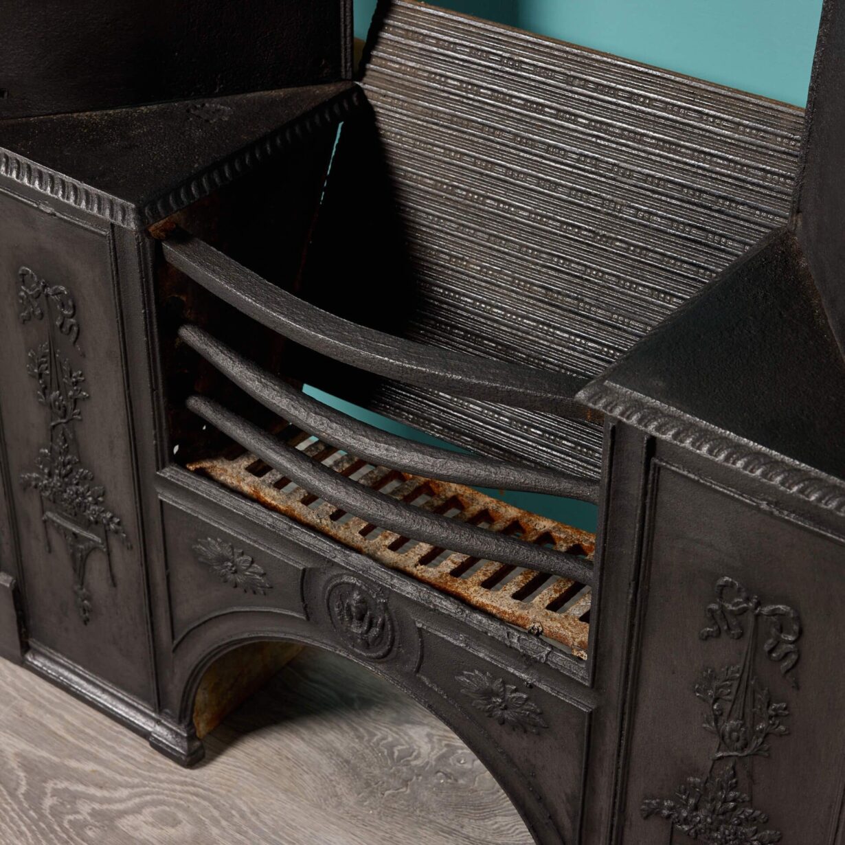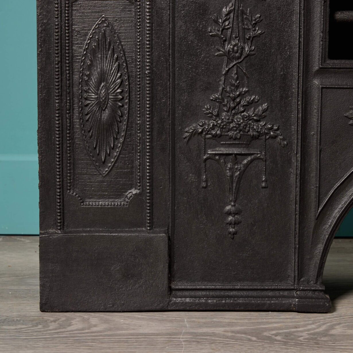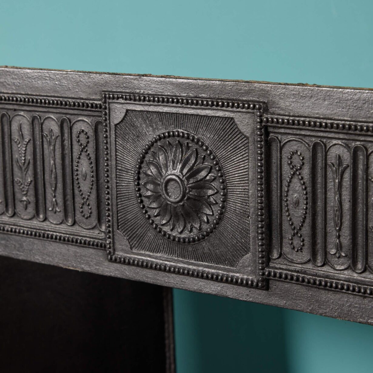 back to topA finely made Georgian cast iron register grate dating from the late 18th century attributed to Coalbrookdale. Over 240 years old, this antique fire grate is in good condition with a recent black graphite finish, ready to be fitted. It is beautifully cast throughout, detailed with patera and decorative floral embellishments reminiscent of the period, making a superb fire insert for the chimneypiece of a traditional Georgian property or period townhouse. It was sourced from a property in Telford.