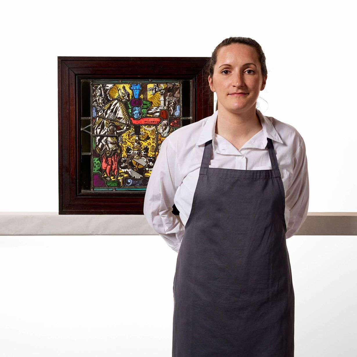 Together, this creates a highly intricate and finely designed stained glass panel with vibrant colours that’ll look impressive in any setting. It is set into a deep box frame which would’ve originally been backlit.