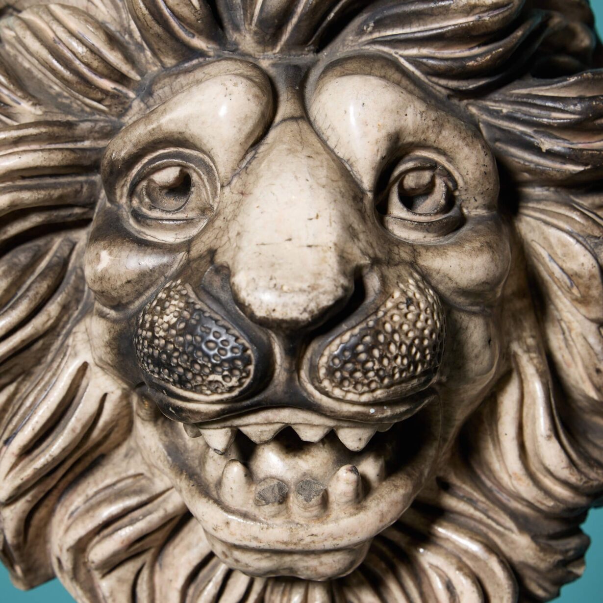 back to topA glazed antique lion mask attributed to LEFCO dating back to the 1900s.