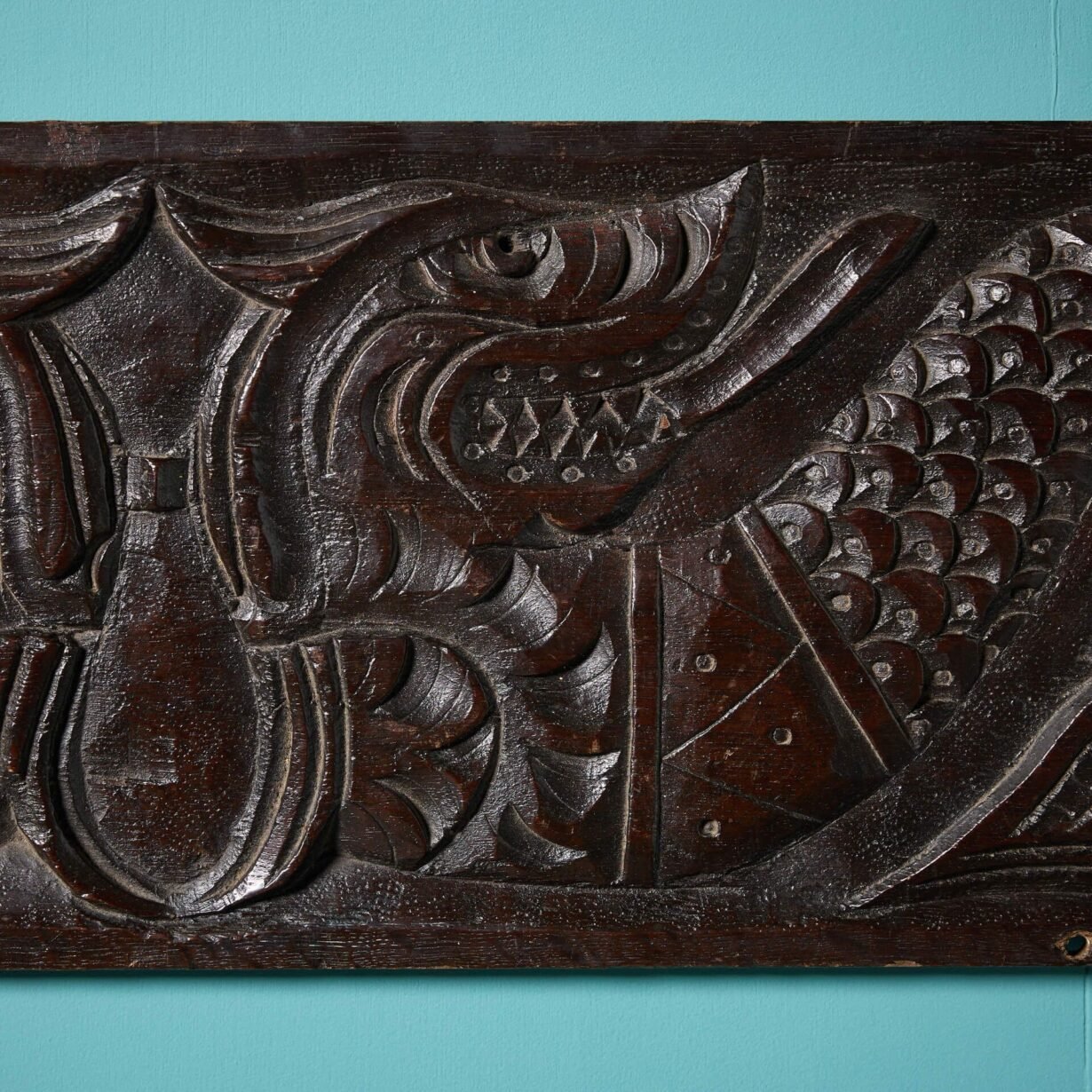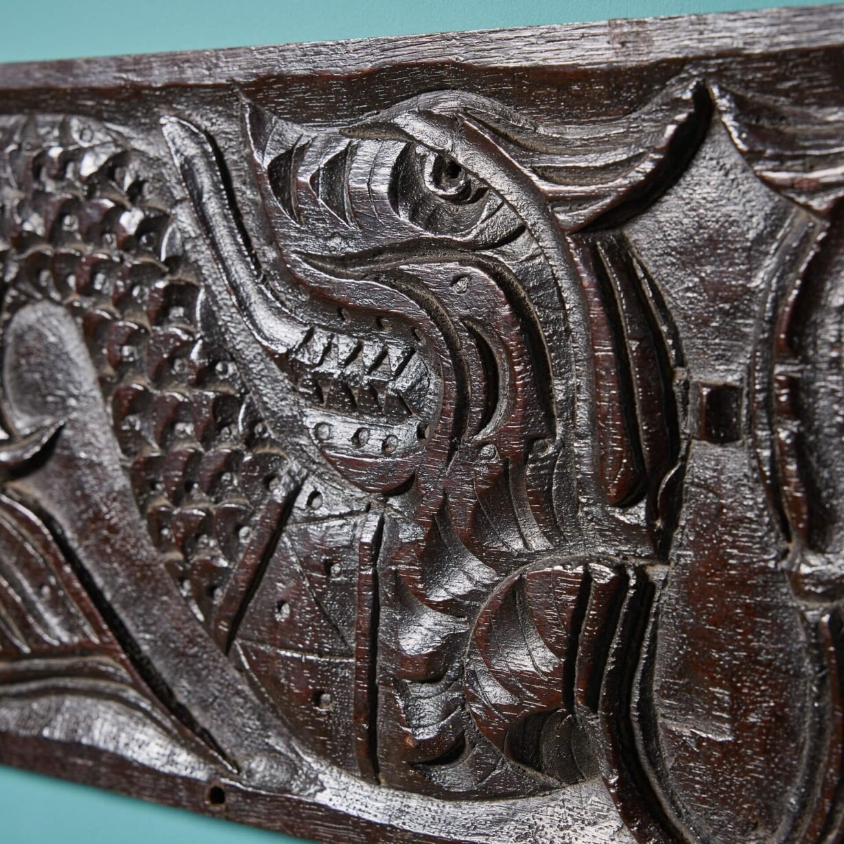 back to topA stunning mid 17th century oak wall hanging panel, handcarved with mythical creatures across a beautiful patinated dark oak frieze. Once forming part of a larger sequence, this antique panel today serves as a decorative oak wall panel and artwork piece, offering a glimpse into an English interior from more than 370 years ago!