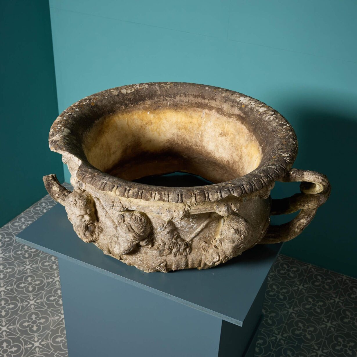 The original Warwick Vase, often closely associated with the Albani Vase, on which this terracotta version is based is thought to originate from as early as the 2nd century.