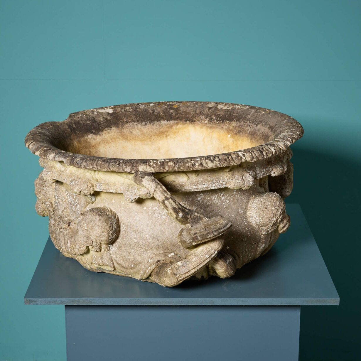 back to topA large scale Antique Carrara marble fragment of the Warwick vase.