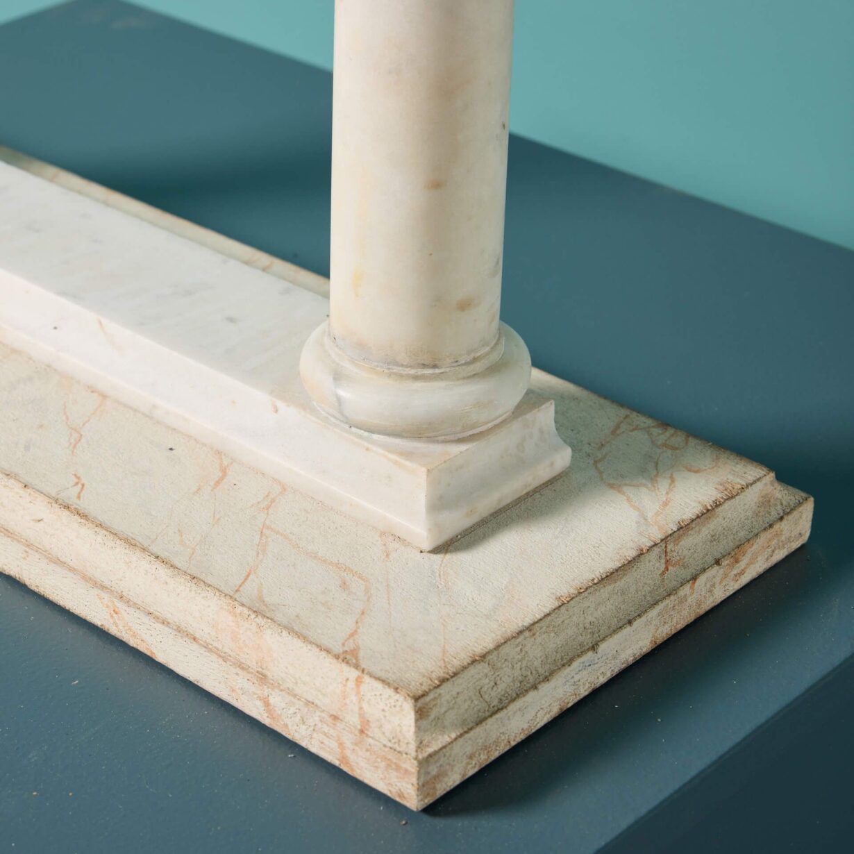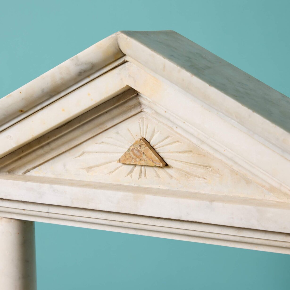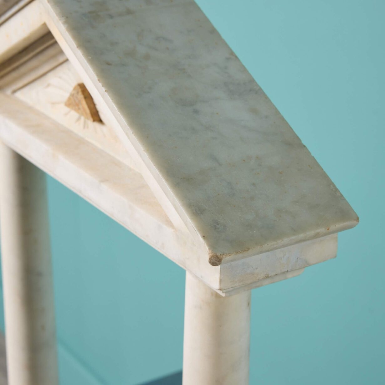 back to topAn antique Italian Grand Tour model of temple entrance in the manner of the ancient Greek Acropolis, Athens. The subject of this mid 19th century model is beautifully captured in fine quality Carrara marble, the apex inset with a triangle of coloured marble that radiates a striking sunburst. It is mounted onto a wooden board with a marble effect finish to match.