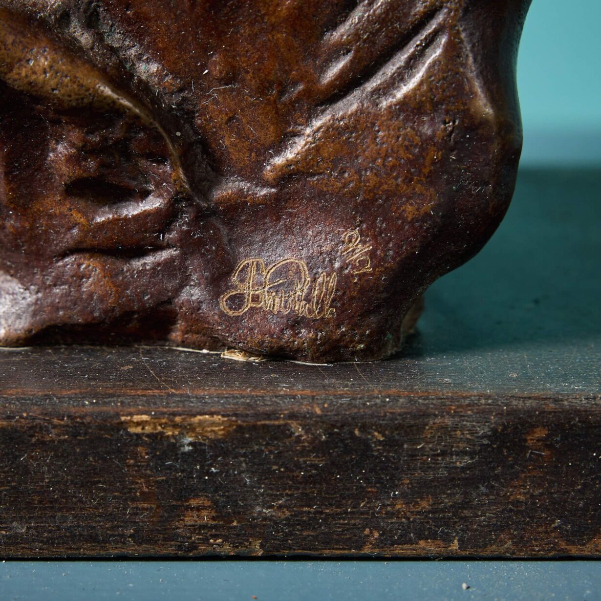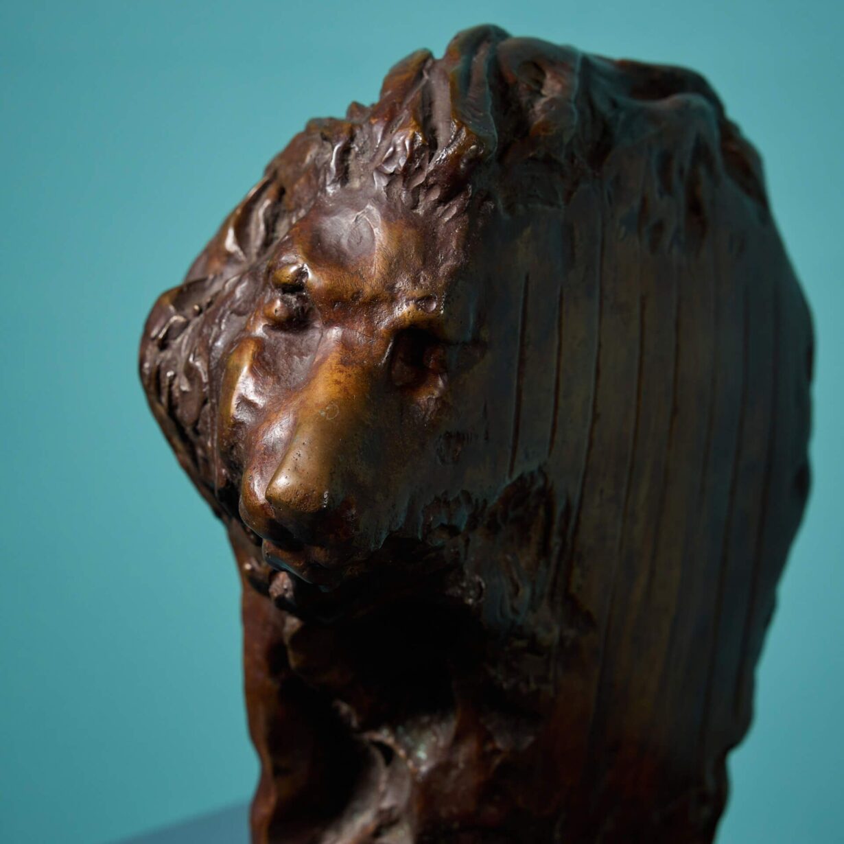 From here, he created the Caged Lion series, crafting a range of sculptural figures and original maquettes with one distinctive flat edge, marked with vertical lines representative of the bars of a cage.