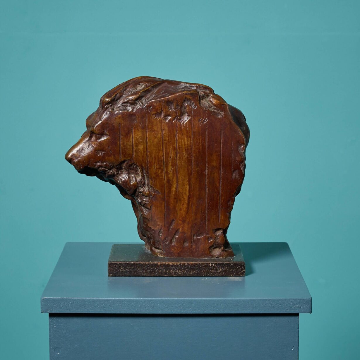 back to topA fascinating patinated bronze tabletop sculpture of a caged lion mask by the acclaimed British sculptor, John W. Mills. Signed and marked ‘2/2’, this is a limited edition piece, mounted on a rectangular base for interior display.