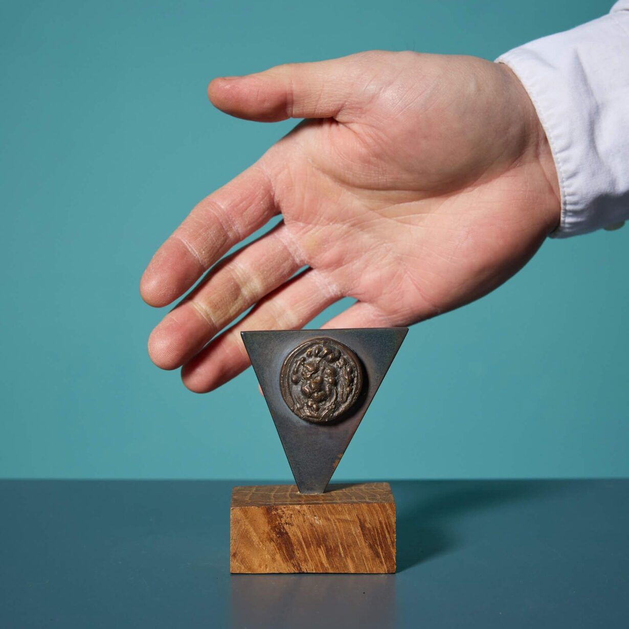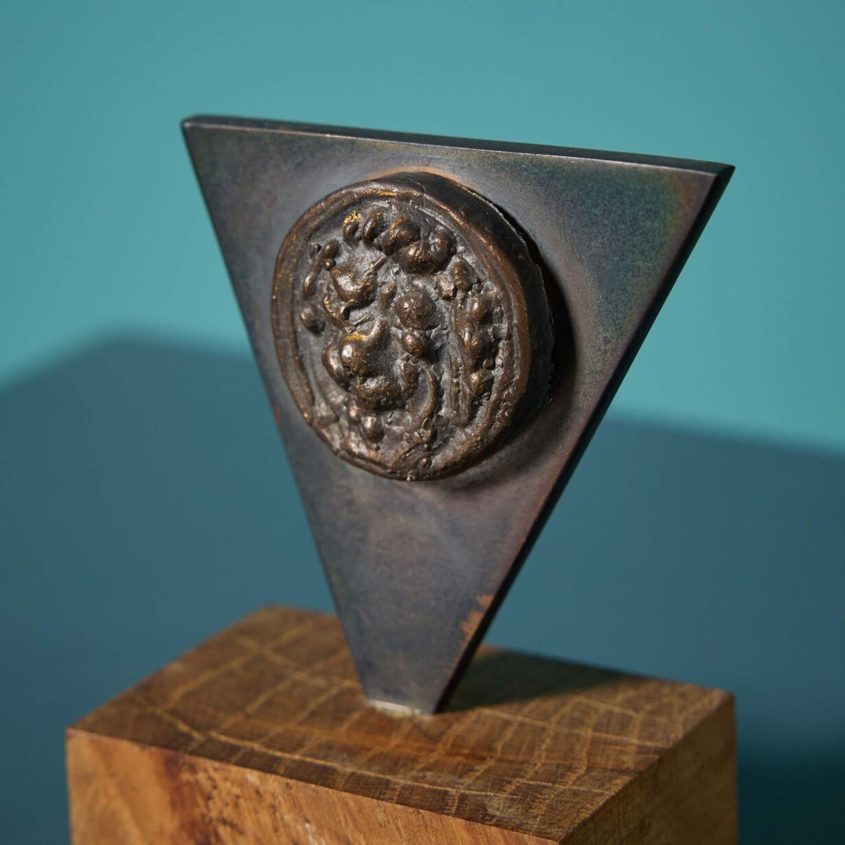 back to topA reclaimed patinated bronze plaque depicting a lion’s mask on a triangular mount by the acclaimed British sculptor, John W. Mills.