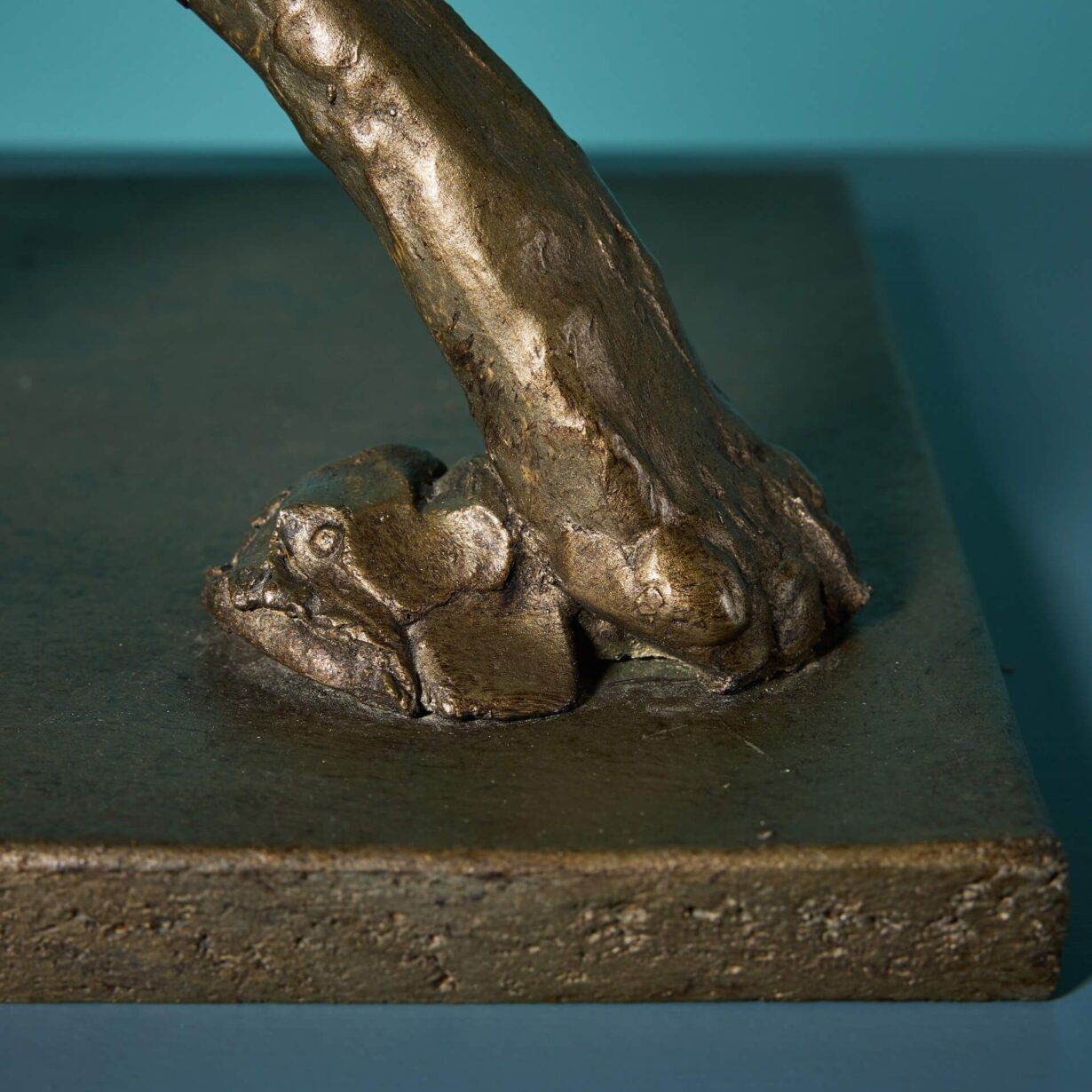 back to topA fascinating bronzed tabletop sculpture of a prowling lion by the acclaimed British sculptor, John W. Mills. This is an original resin maquette from the artist’s Caged Lion series which explores the symbolism of confining such a great and powerful beast to a cage.
