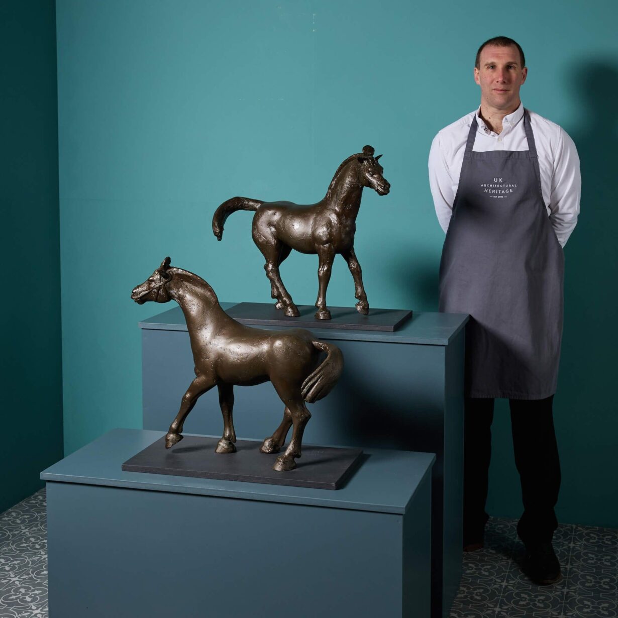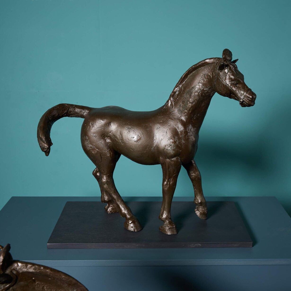 Depictions of Tang dynasty horses can be found in the British Museum, from which John W. Mills found inspiration for his own graceful four-legged sculptures. A full size example of one the artist’s Chinese Dynamic horses, installed in 1994, can be found in Minton Lane, Harlow and another in a private collection in Oxfordshire.