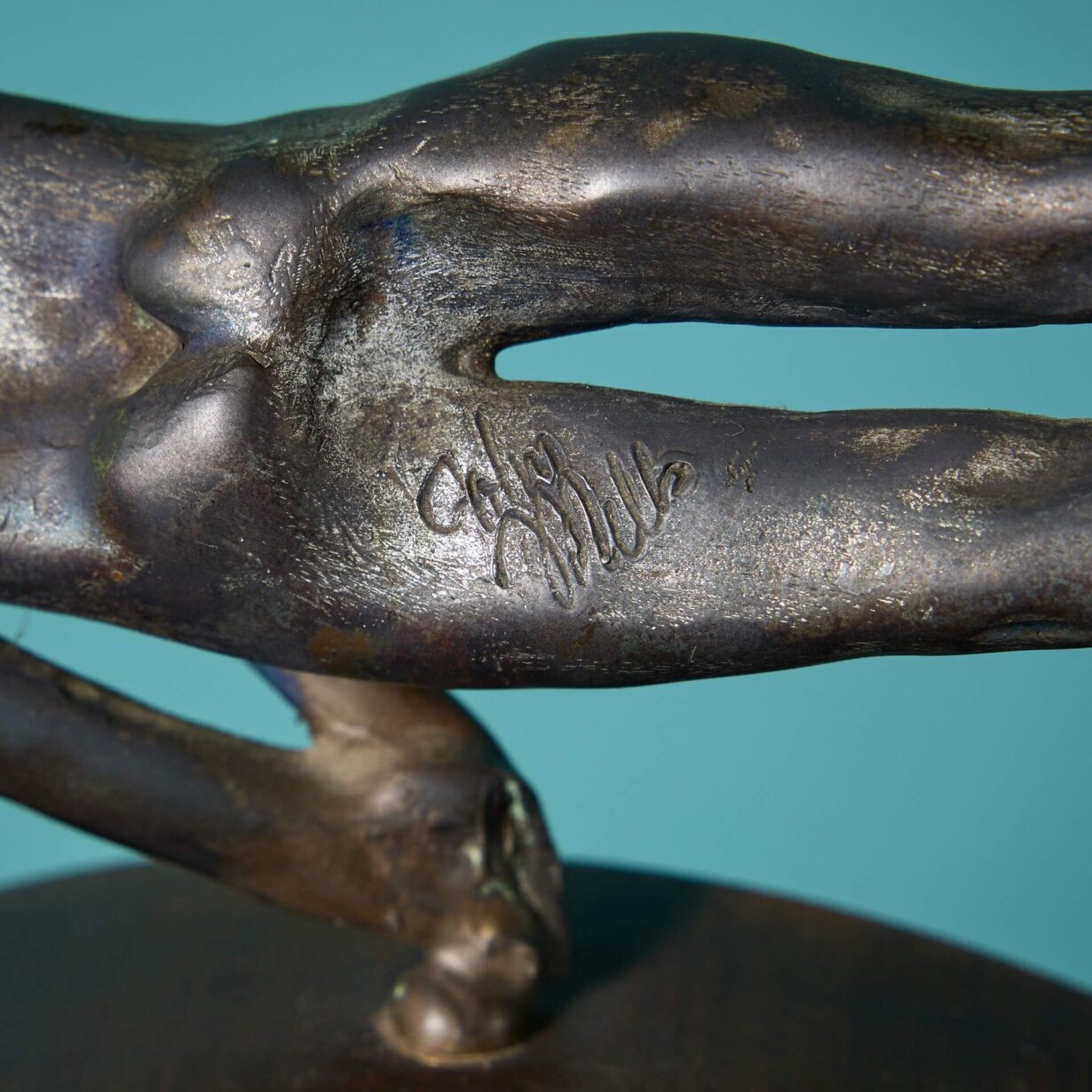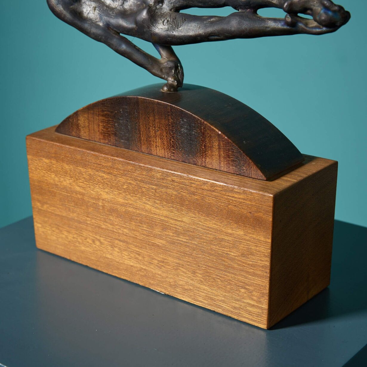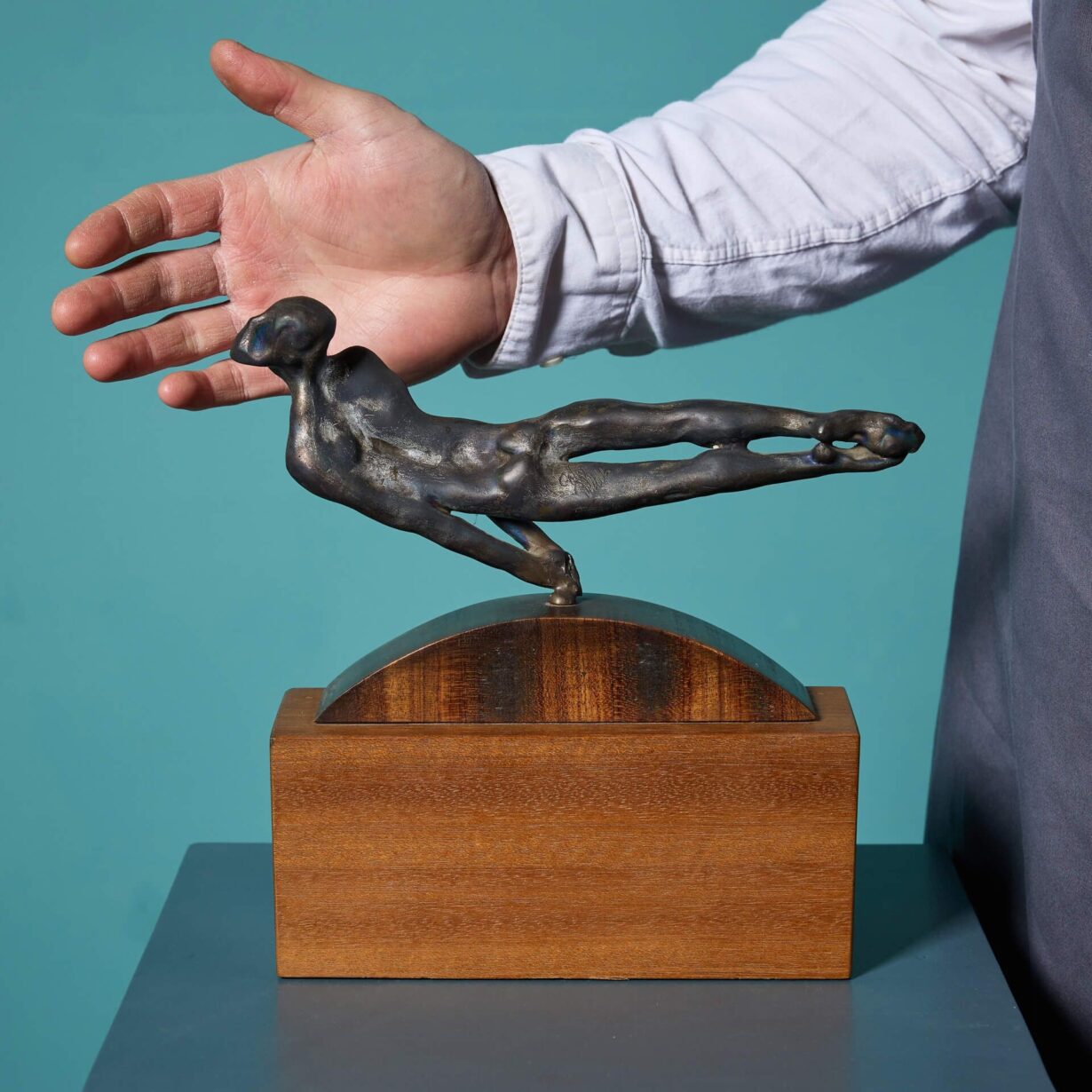 back to topA bronze figural tabletop sculpture titled ‘Pommel Horse’ by the acclaimed British sculptor, John W. Mills. Signed by the artist, this bronze is mounted on a domed and rectangular wooden base, making it perfect for decorative display in an interior.