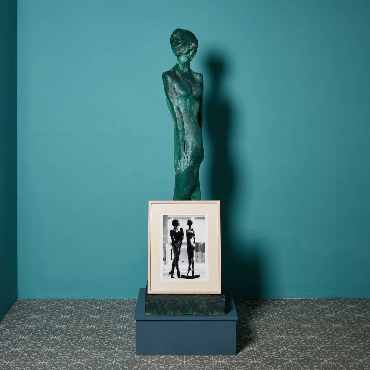The framed original photograph by Michael Ward shows Seal mimicking her copy’s pose during its time in the Alwyn Gallery, London, 1977. Number ’51’ can be seen to the base of the photo. (Framed photograph included with the statue)