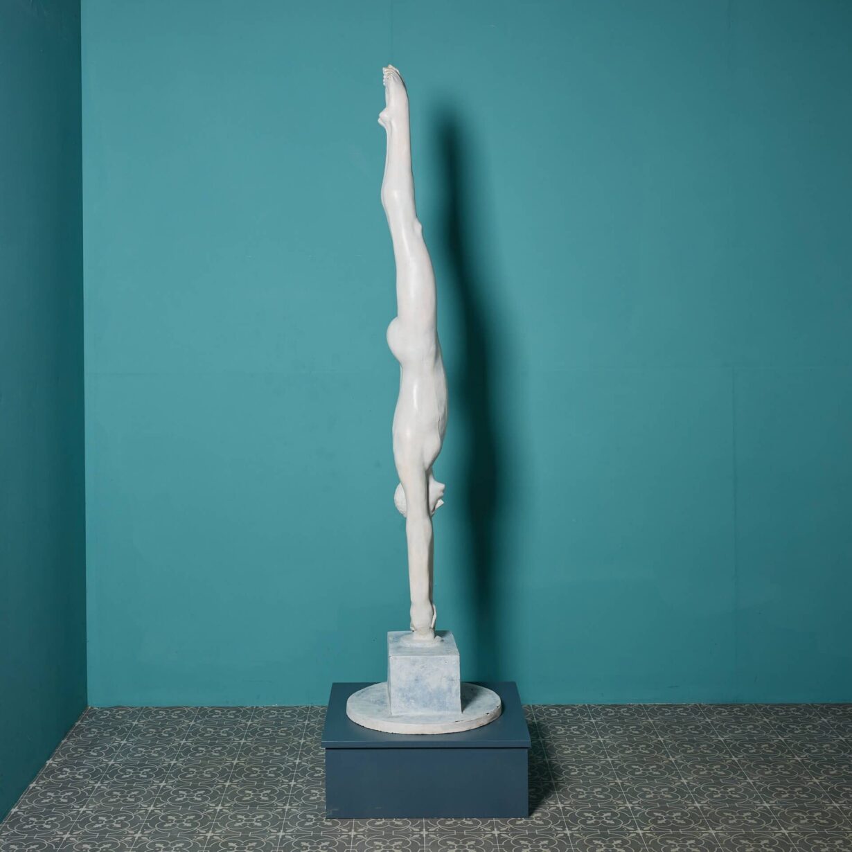 While this is a motionless, three-dimensional piece, it demonstrates the talent of the artist, the diver cleverly captured in such a way that creates the impression of movement as the female figure dives into water.