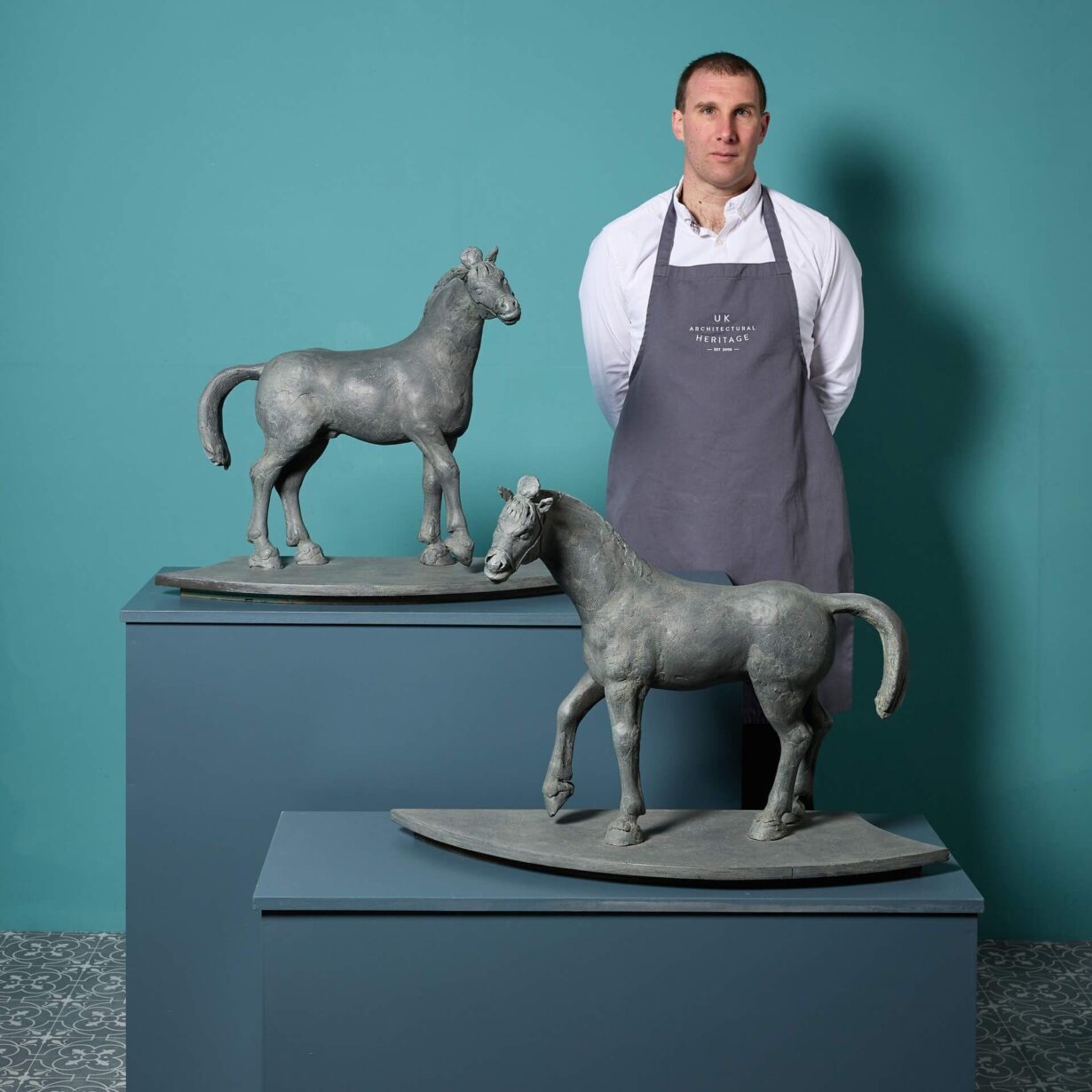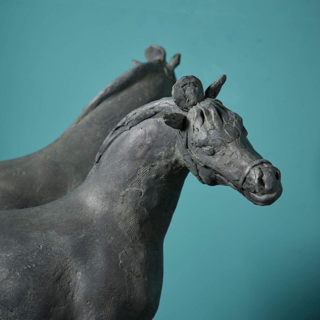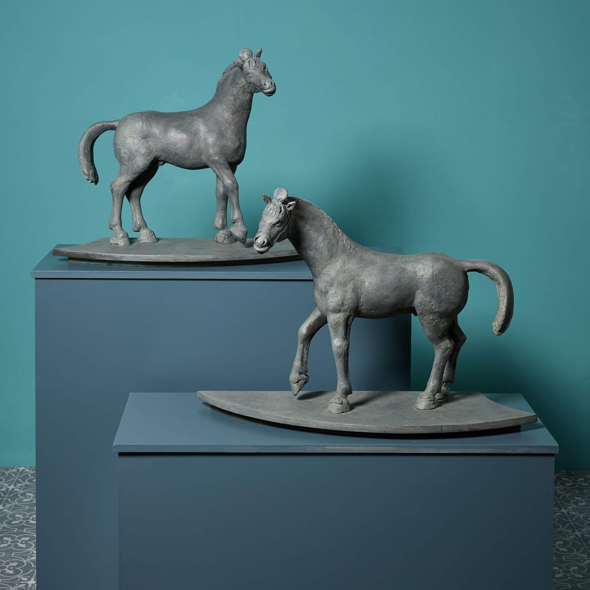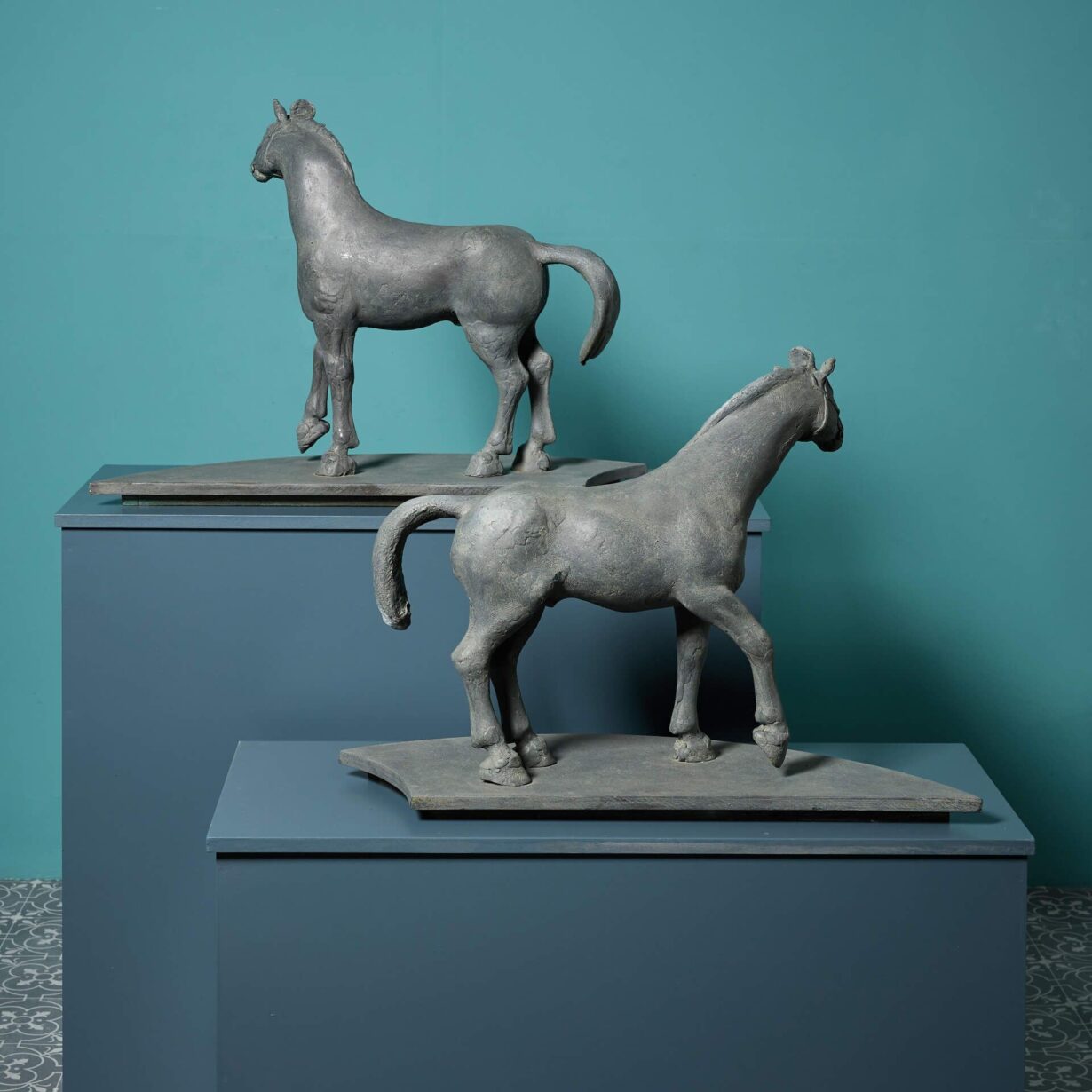 One looking left, the other looking right, these horse sculptures would look particularly striking either side of a doorway, staircase or chimneypiece. Interestingly, when placed together side by side, their bases form the shape of a horse hoof.