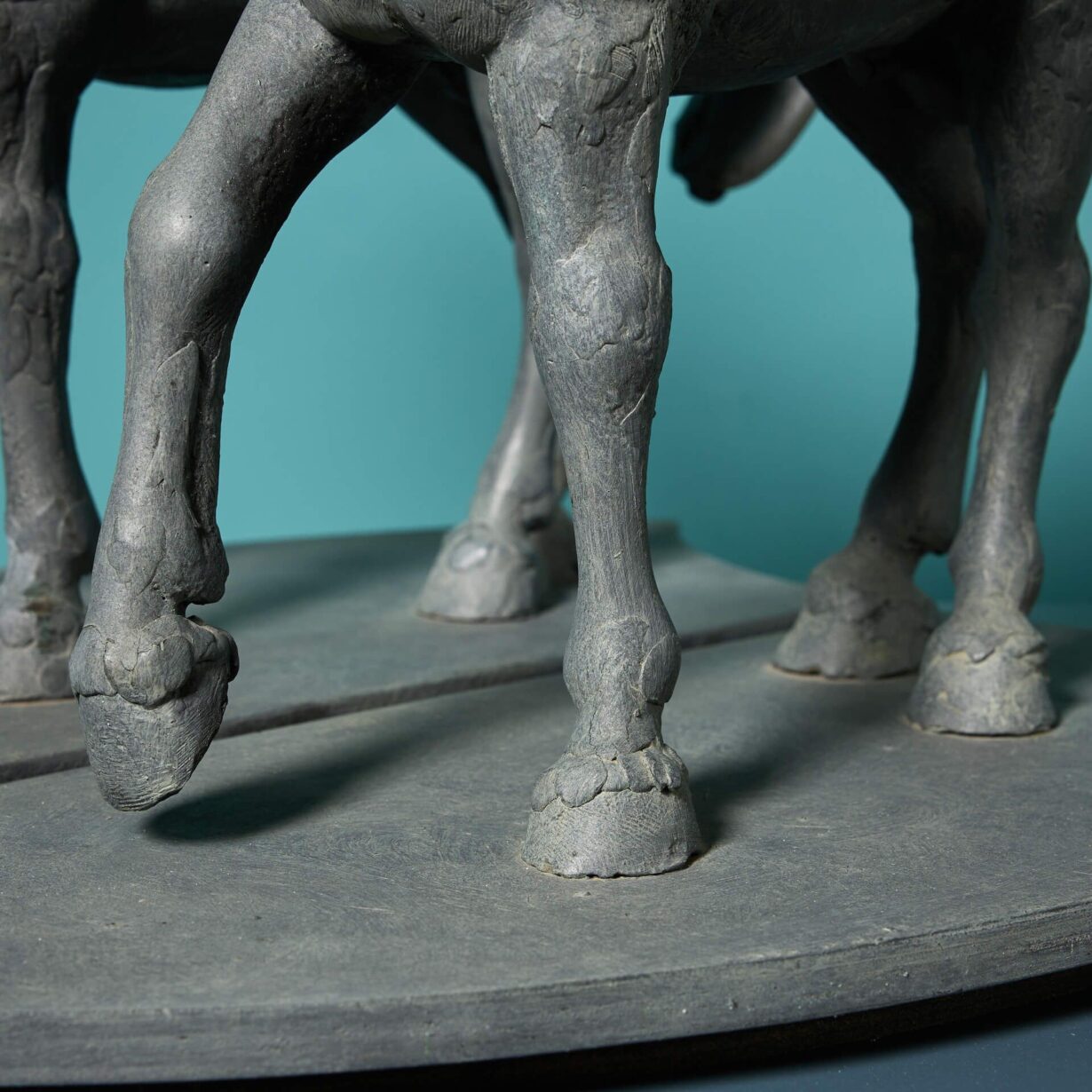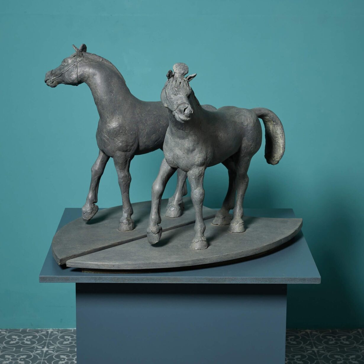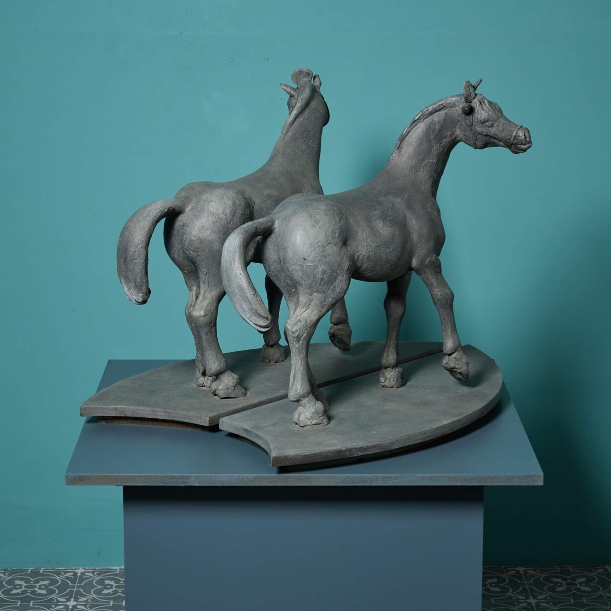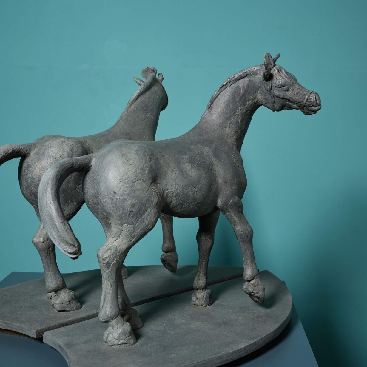 One looking left, the other looking right, these horse sculptures would look particularly striking either side of a doorway, staircase or chimneypiece. Interestingly, when placed together side by side, their bases form the shape of a horse hoof.